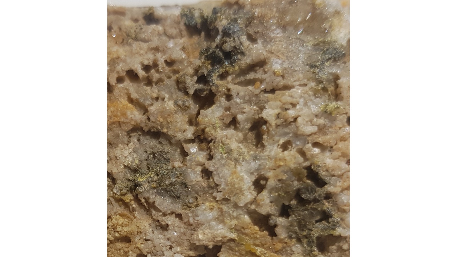 Mimetesyt jako drobne kryształki oraz ich rozetowe skupienia w kwarcowej żyle kruszcowej z Grodziszcza k. Bielawy w obrębie bloku gnejsowego Gór Sowich. Mimetesyt ma barwę ciemnozieloną, żółtozieloną bądź brązowozieloną. Na ogół tworzy krystaliczne powłoki, rzadziej nacieki, plamy na żyle kwarcowej. Pochodzi z rozkładu galeny, która także jest obecna w żyle. Jest to rzadki arsenian, mało spektakularny, choć pod lupą można obserwować jego dobrze wykształcone kryształy. Polecam zaawansowanym kolekcjonerom, poszukującym ciekawostek mineralogicznych z polskich Sudetów, dla których estetyka nie jest wyłącznym kryterium oceny okazu.