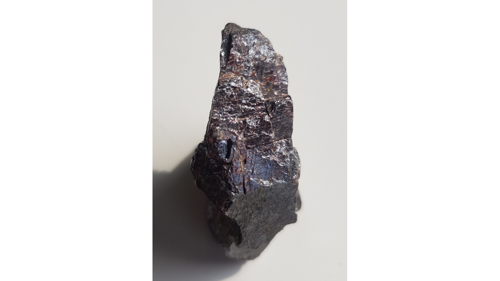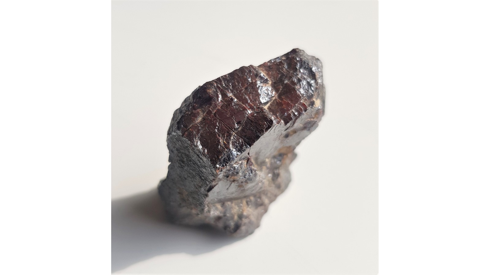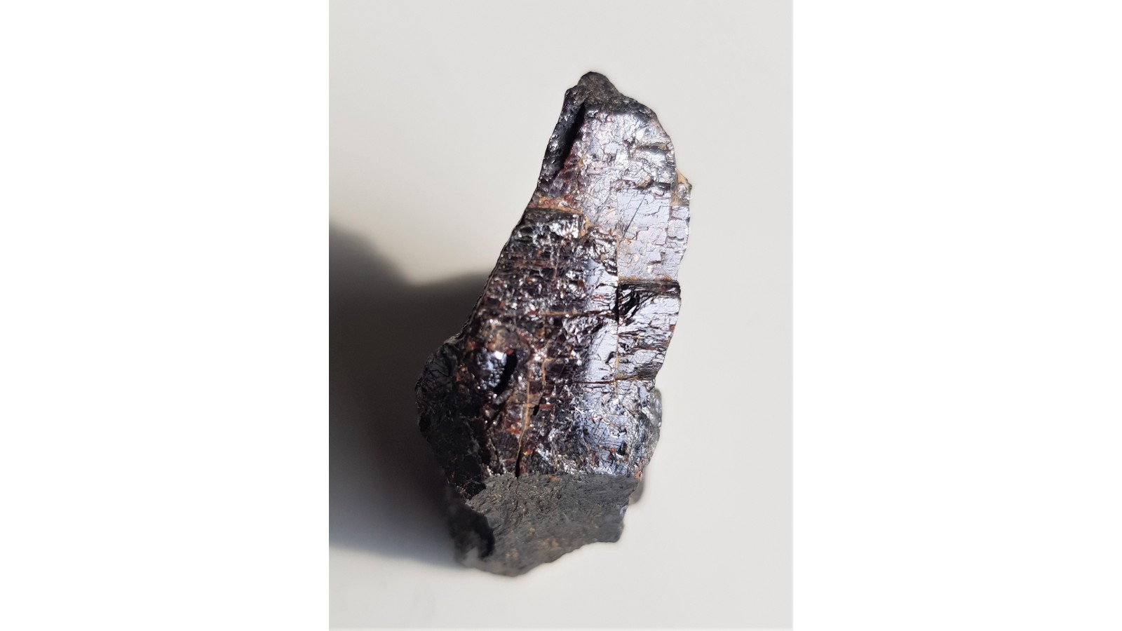 Piękny, duży, o diamentowym połysku krystaliczny rutyl z miejscowości Kozohlody w Czechach. Widoczne zbliźniaczenie, ścianki, powierzchnie łupliwości a przede wszystkim intensywnie czerwona barwa a także połysk metaliczny w silniejszym świetle. Cały okaz to duży rutyl. Polecam.