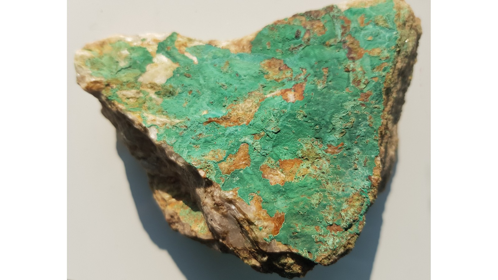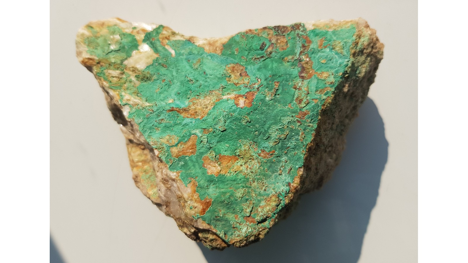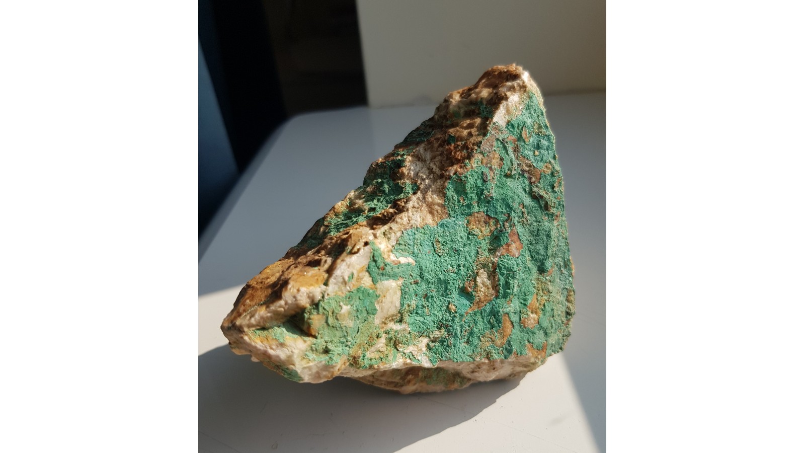 Pokaźny fragment żyły barytowej pokryty obfitym malachitem niemal z każdej strony. Okaz z historycznej, nieznanej szerzej kopalni Klaerner w Dziwiszowie k. Jeleniej Góry. Okazy nieobecne na rynku, sprzed wielu lat. Polecam.