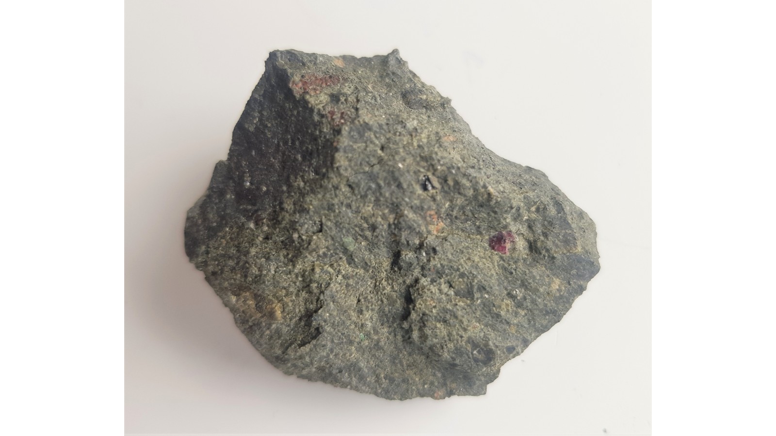 Surowy kimberlit z jednego z nielicznych wystąpień kimberlitów w Europie (Finlandia, Rosja - okolice archangielska). Widoczne minerały typowe dla kimberlitów oraz efekty procesu serpentynizacji. Okaz całkowicie bez obróbki. Ciekawostka.
