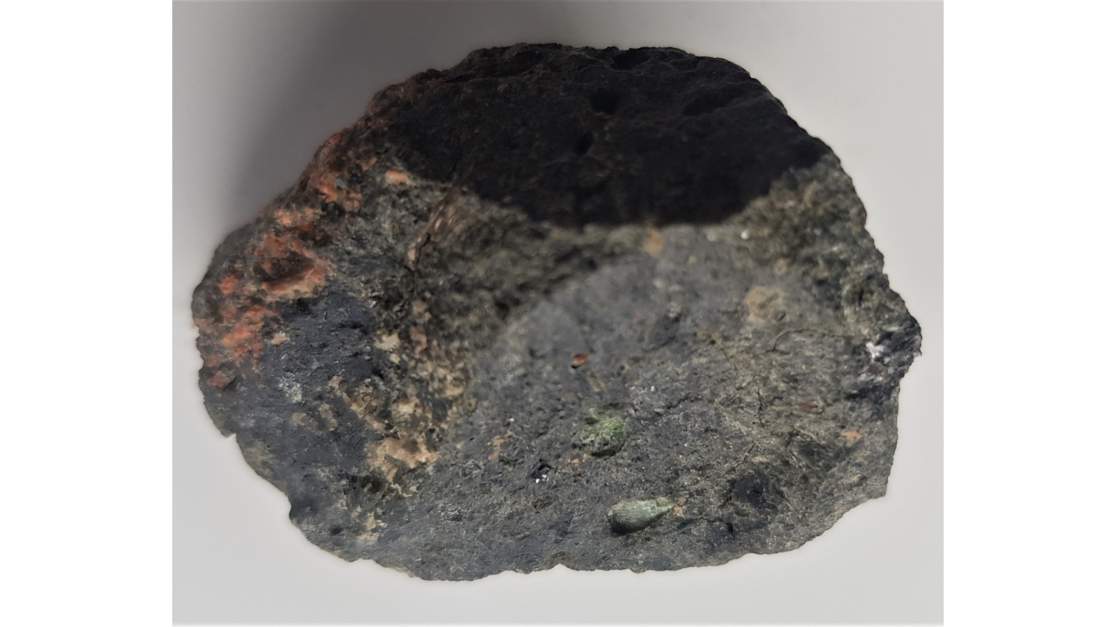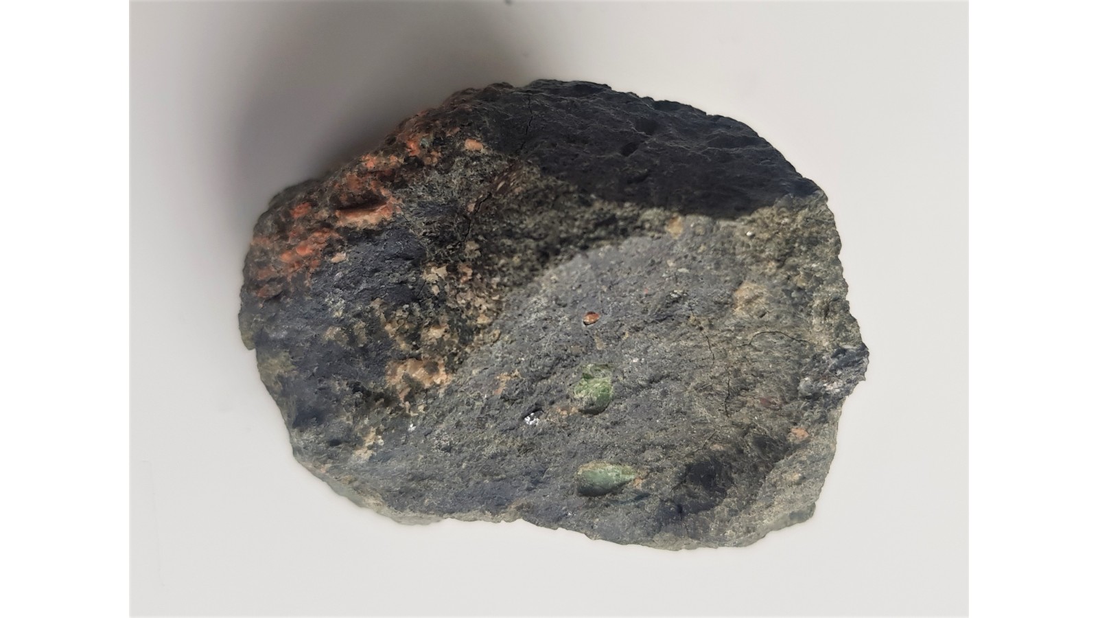 Surowy kimberlit z jednego z nielicznych wystąpień kimberlitów w Europie (Finlandia, Rosja - okolice archangielska). Widoczne minerały typowe dla kimberlitów oraz efekty procesu serpentynizacji. Okaz całkowicie bez obróbki. Ciekawostka.