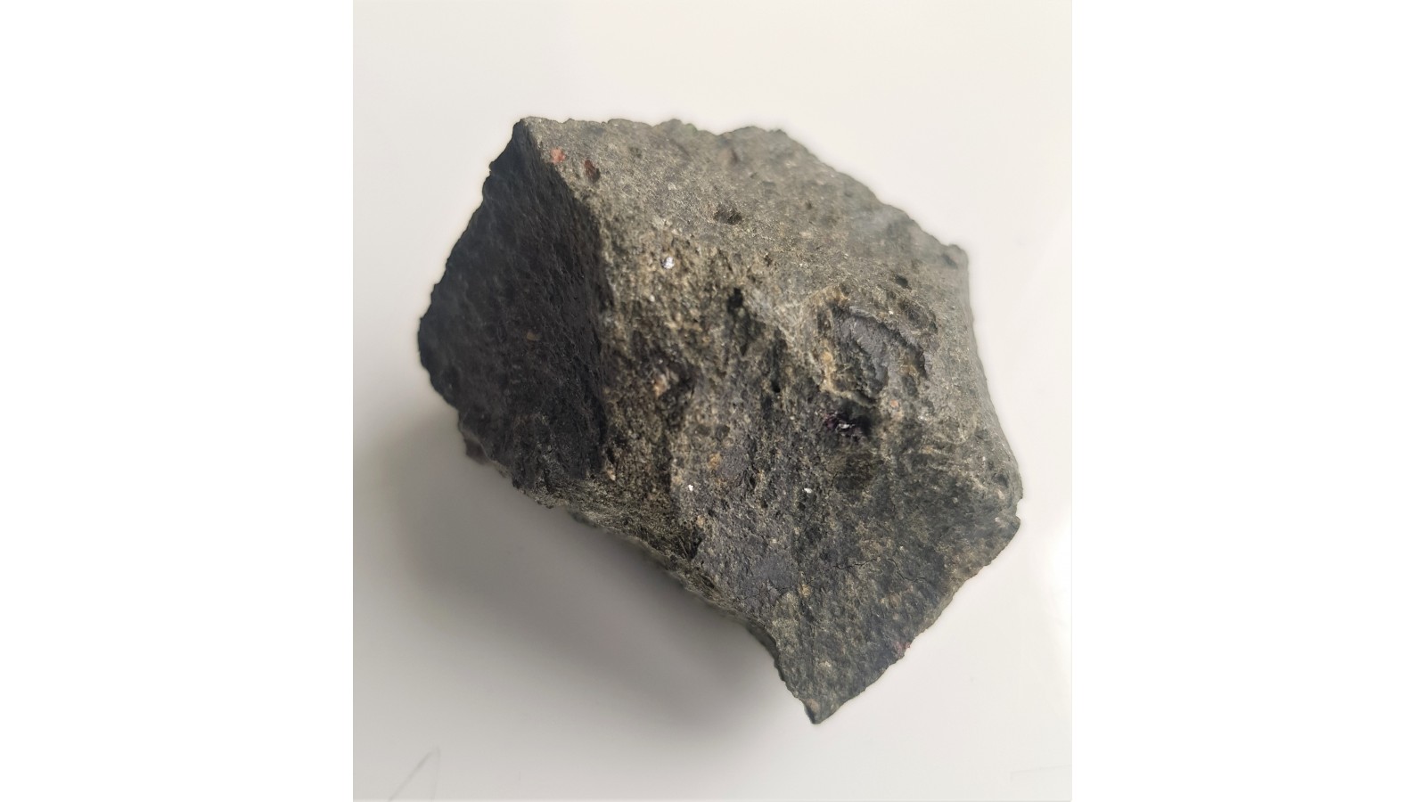 Surowy kimberlit z jednego z nielicznych wystąpień kimberlitów w Europie (Finlandia, Rosja - okolice archangielska). Widoczne minerały typowe dla kimberlitów oraz efekty procesu serpentynizacji. Okaz całkowicie bez obróbki. Ciekawostka.