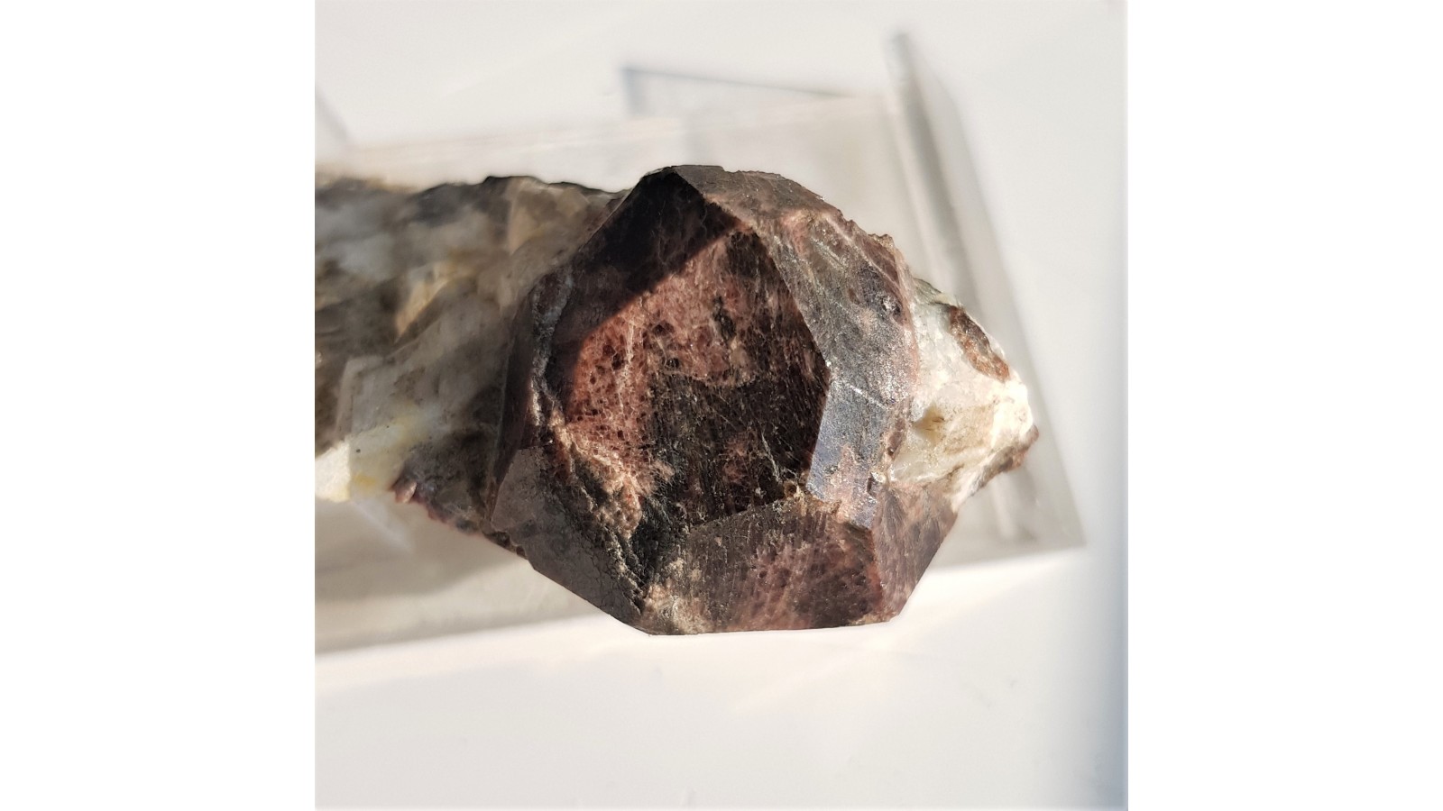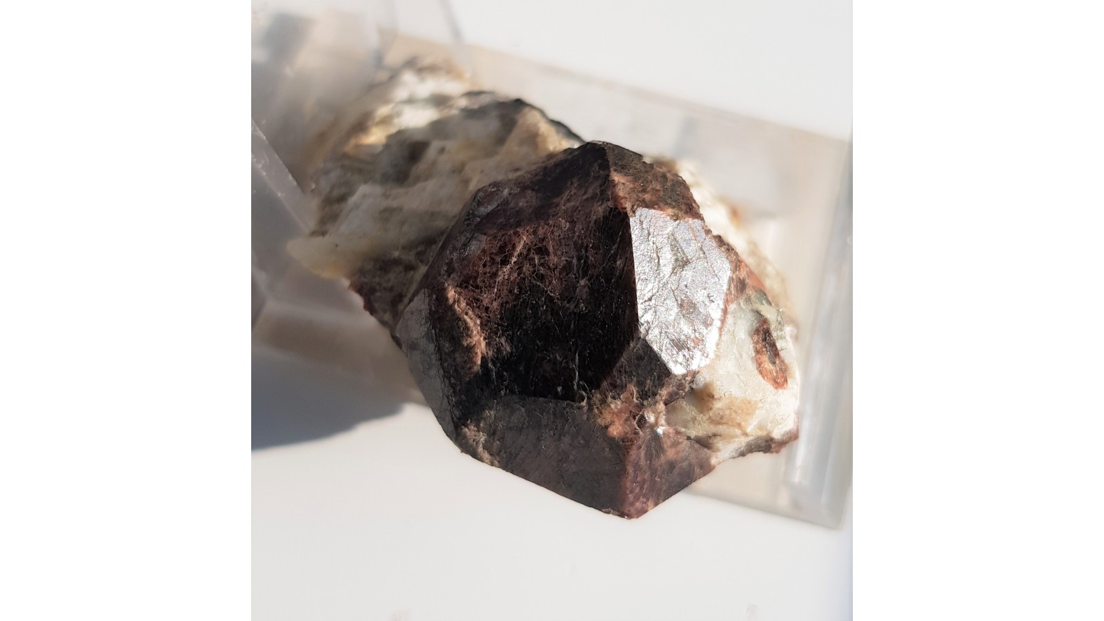 Wzorcowo wykształcony kryształ czerwonego granatu na niewielkiej skale z pegmatytów Piławy Górnej. Bez żadnych uszkodzeń. Piękny okaz mineralogiczny. Polecam.
