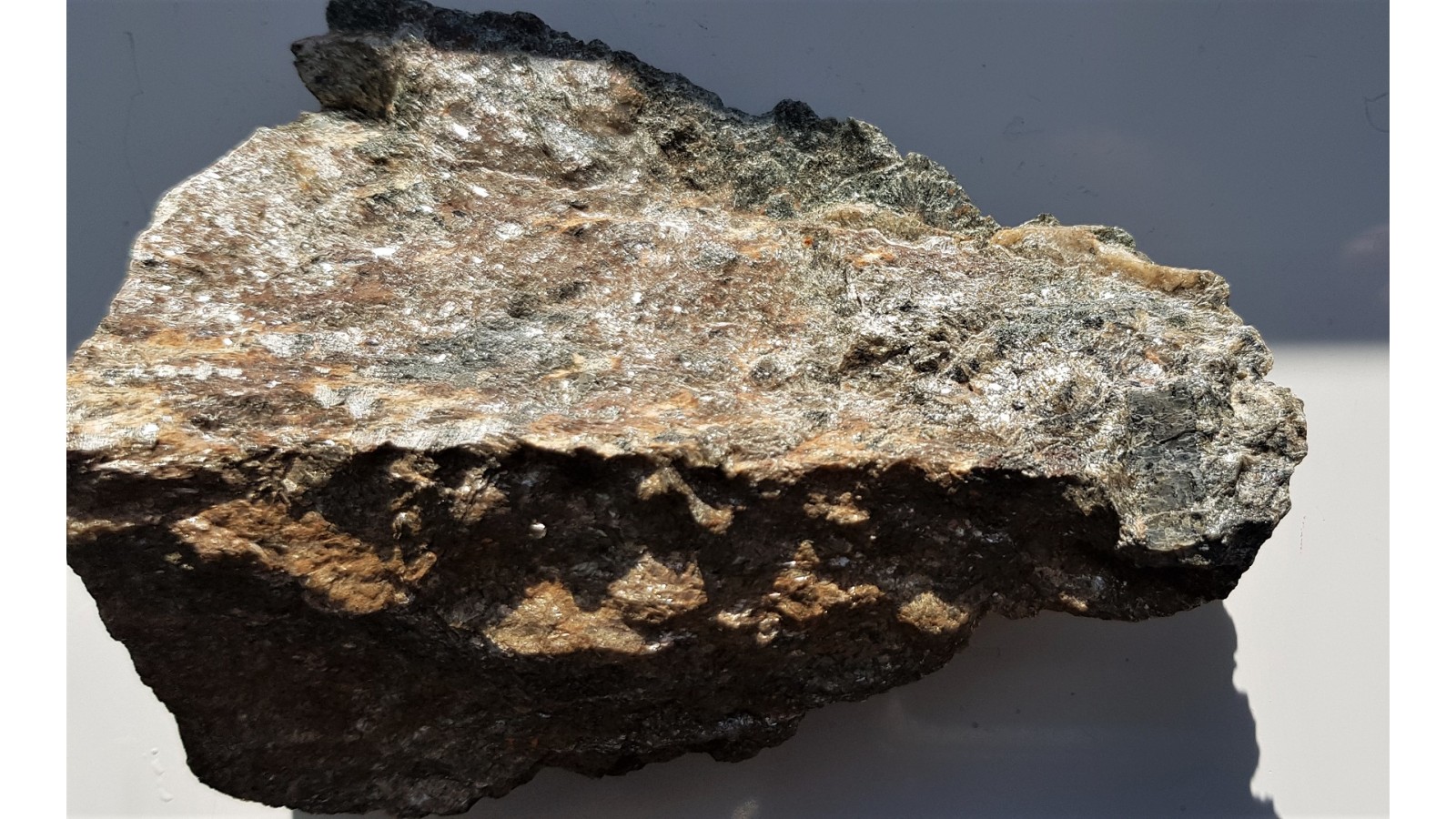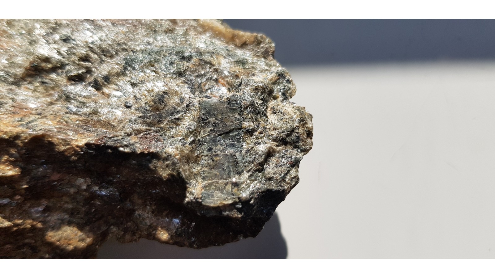 Dysten jako duży kryształ w łupku łuszczykowym z nieznanej lokalizacji w Kamieńcu Ząbkowickim. Sam kryształ o rozmiarach około 2 cm dugości, 0,8 cm szekokości. Polecam.