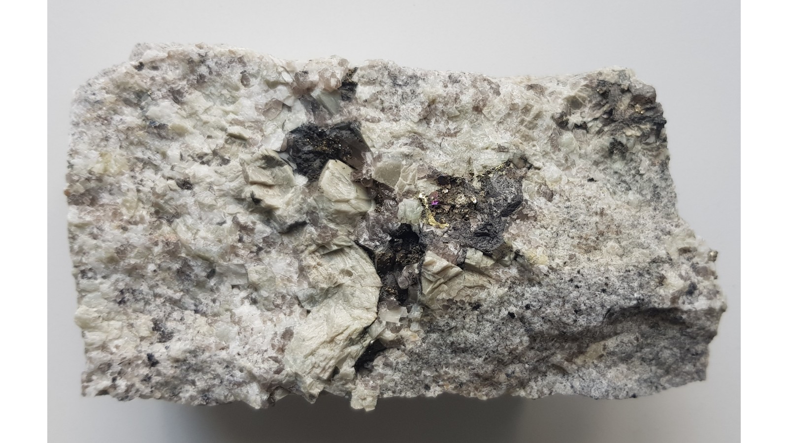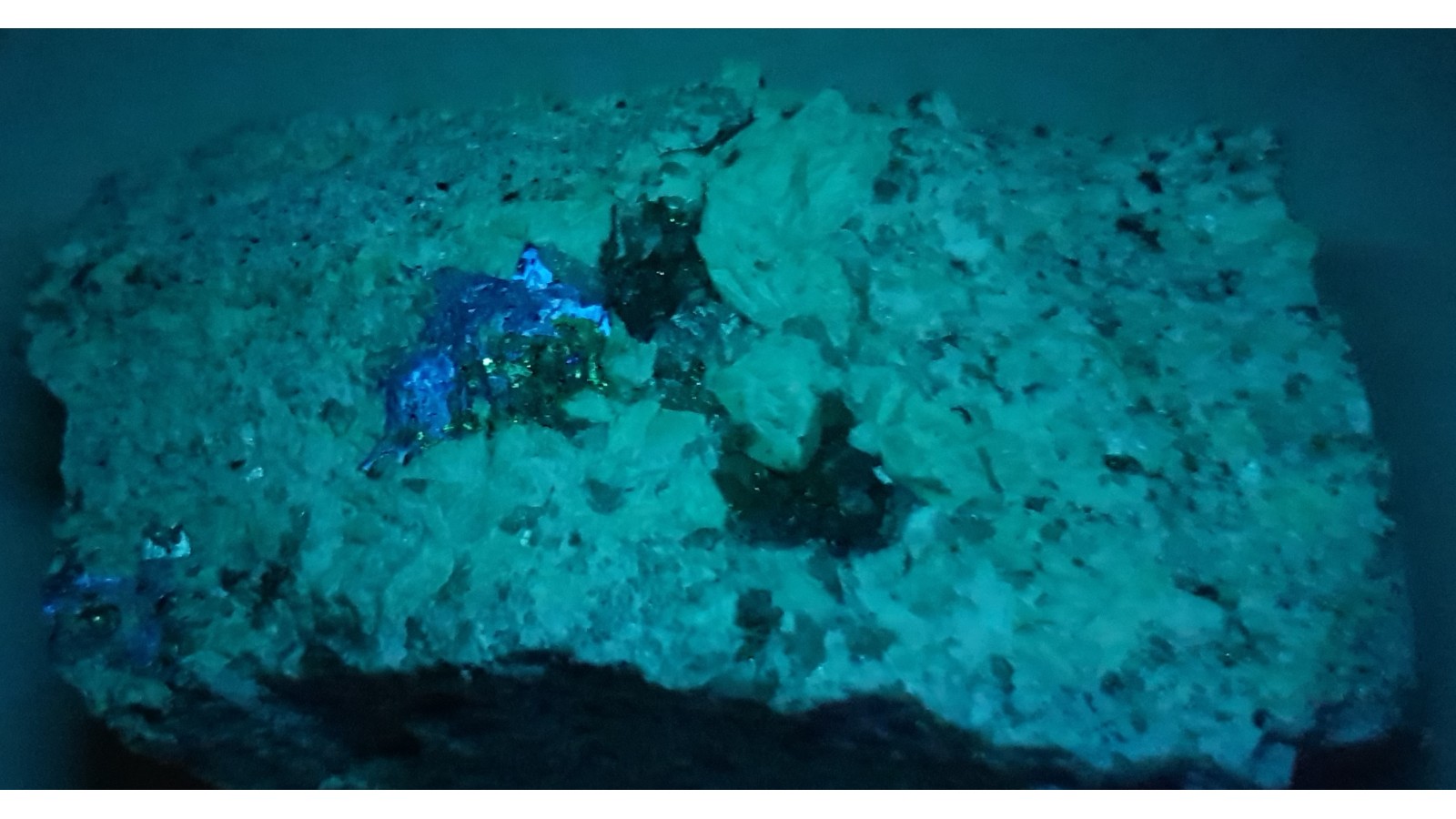 Duże skupienie brązowo-szarego szelitu, rzadkiego minerału wolframu w pegmatycie z aplogranitów Szklarskiej Poręby. Bez UV szelity są dosyć niepozorne i przy pierwszym kontakcie raczej trudne do identyfikacji w próbce. Szelit jest za to wyraźnie widoczny w UV-C - 254 nm (zamieszczono zdjęcie z wyraźną, niebieską luminescencją). Ciekawostka i rzadkość mineralogiczna w polskich Sudetach. Całość naturalna, nie cięta. Polecam zaawansowanym kolekcjonerom.