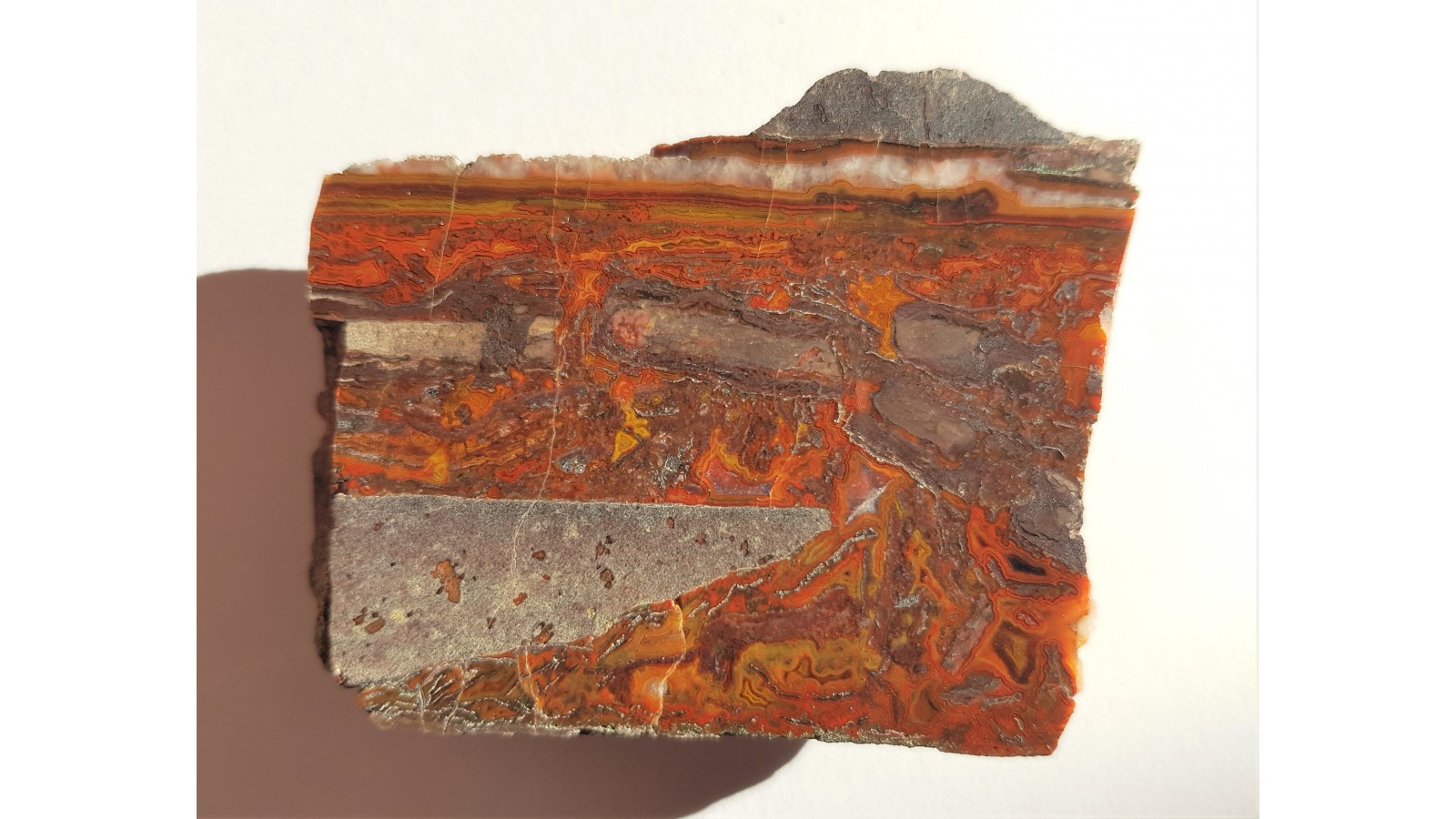 Agat żyowy z Różanej. Zawiły deseń, niezwykle złożony, doskonały poler. Strona przeciwna naturalna, nie cięta. Polecam.