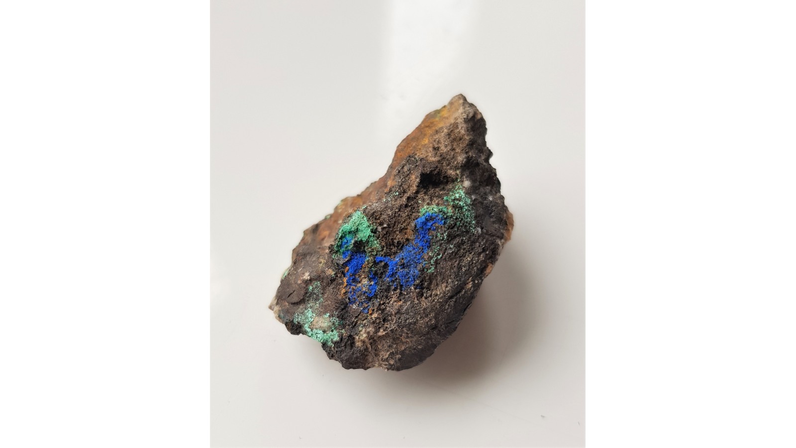 Okaz azurytu oraz malachitu z żyły żelaziaka brunatnego z okolic Chełmca k. Jawora. Azuryt w postaci drobnokrystalicznej, bardzo wyrazisty. Rzadkość w tej lokalizacji. Polecam.