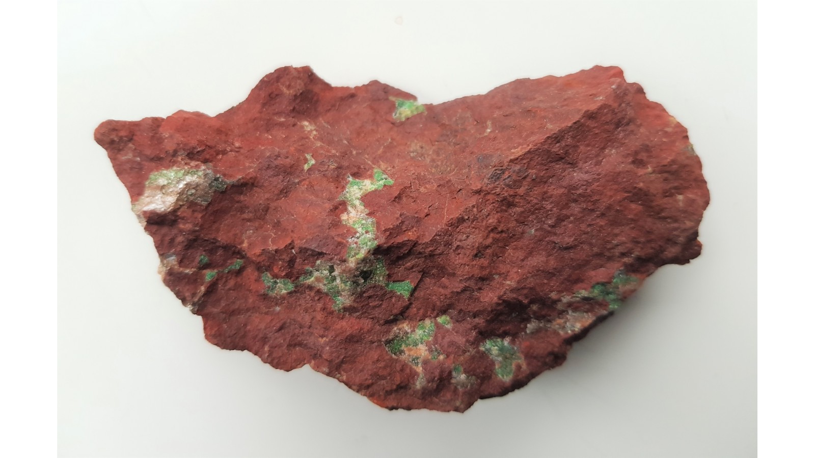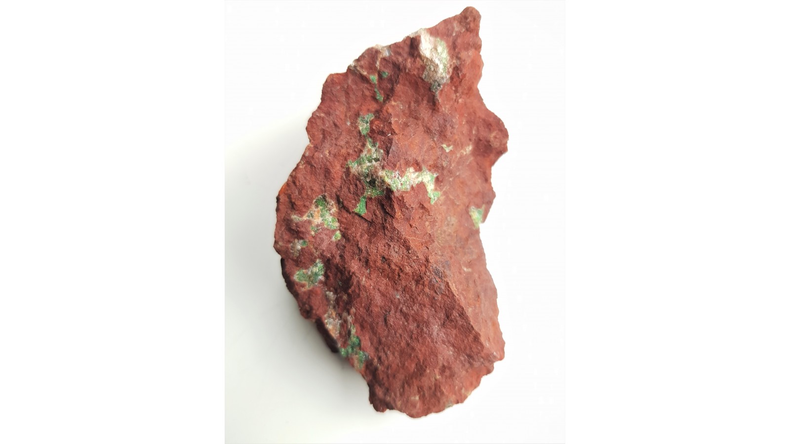 Intensywnie jasnozielony konichalcyt jako wypełnienie kawern we fragmencie żyły rudnej z Rędzin k. Kamiennej Góry. Okaz bardzo rzadkiego w Sudetach minerału, arsenianu miedzi i wapnia. Lokalizacja całkowicie niedostępna, wyekspoloatowana strefa oraz zakaz wstępu do kamieniołomu. Okaz bardzo estetyczny, kontrastowo zabarwiony. Polecam.