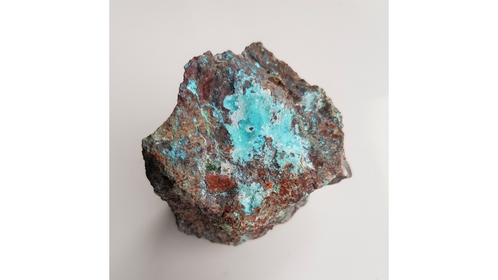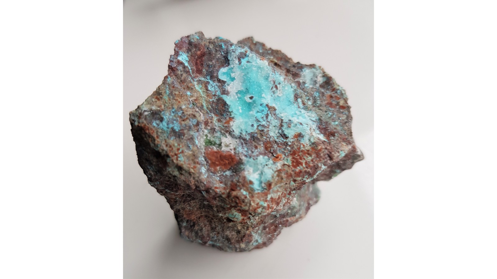 Intensywnie błękitna chryzokoloa pokryta skrzącym się kwarcem na fragmencie żyły rudnej z Rędzin k. Kamiennej Góry. Lokalizacja całkowicie niedostępna, wyekspoloatowana strefa oraz zakaz wstępu do kamieniołomu. Okaz bardzo estetyczny. Polecam.