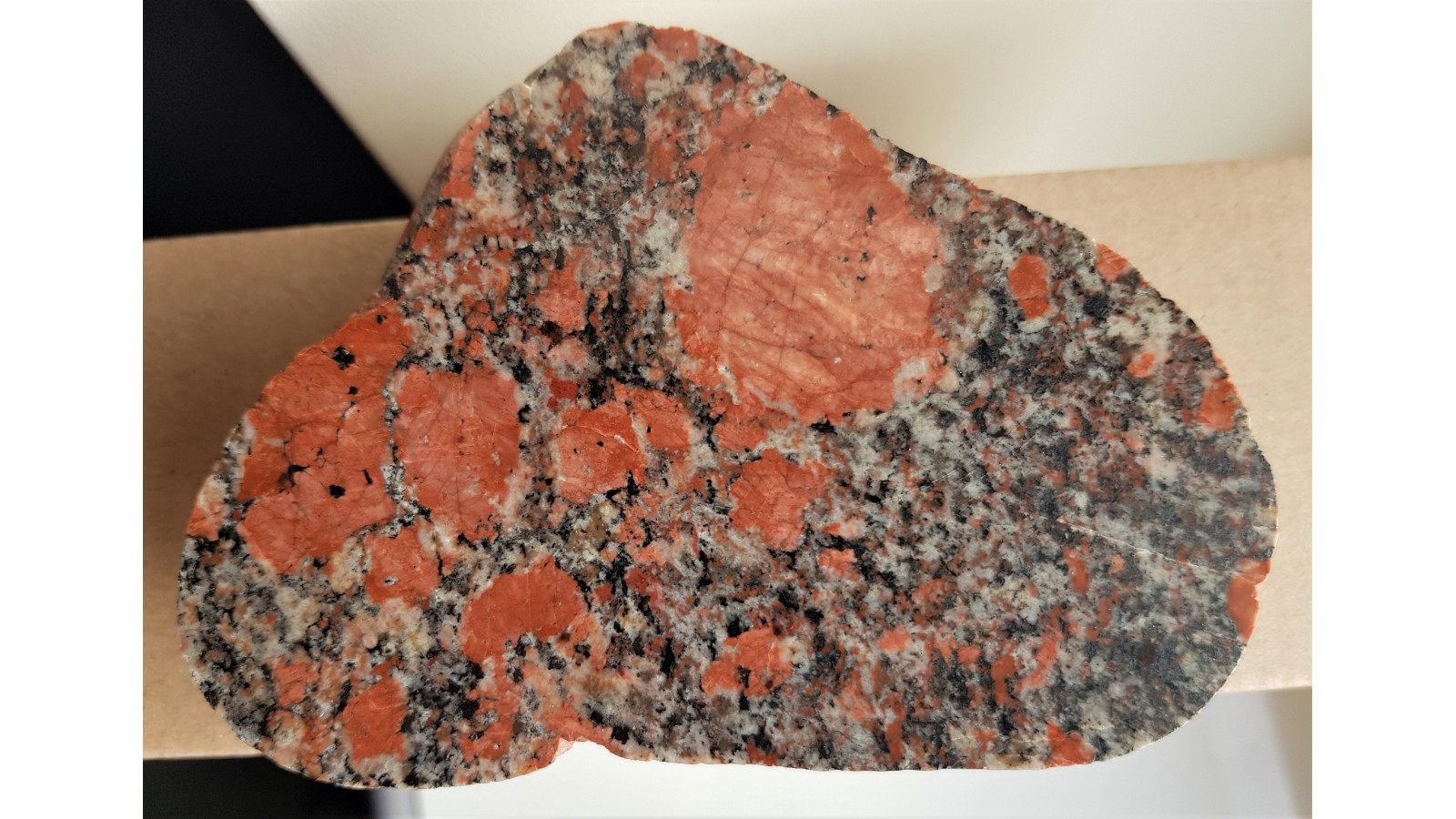 Granit z prakryształami intensywnie czerwonych skaleni, eratyk, Kołobrzeg