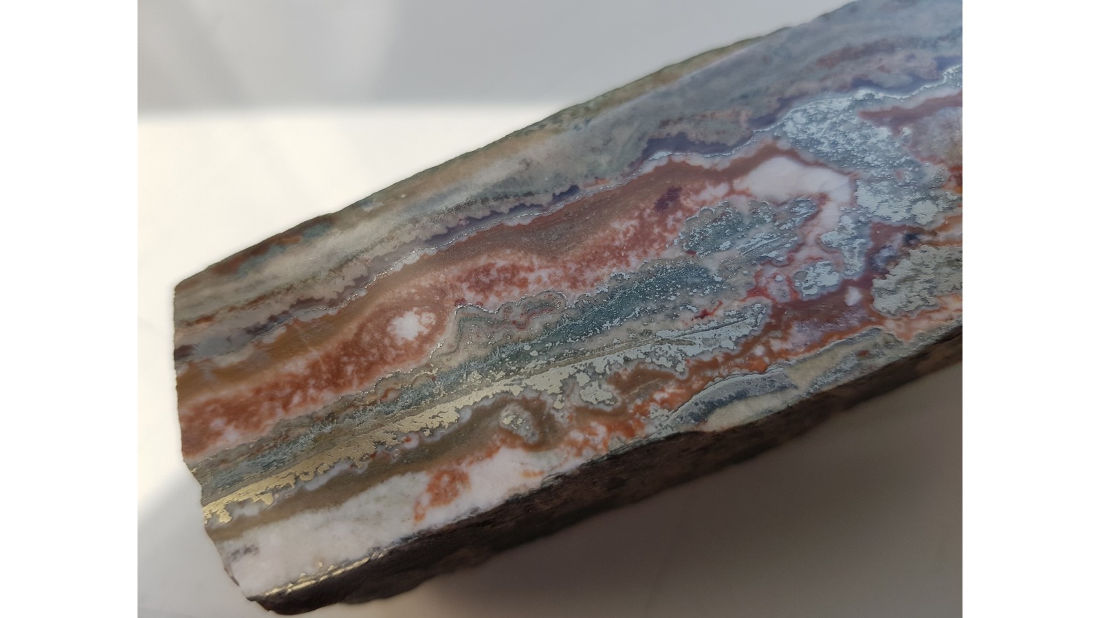 Agat żyłowy z Borówna obficie impregnowany pirytem