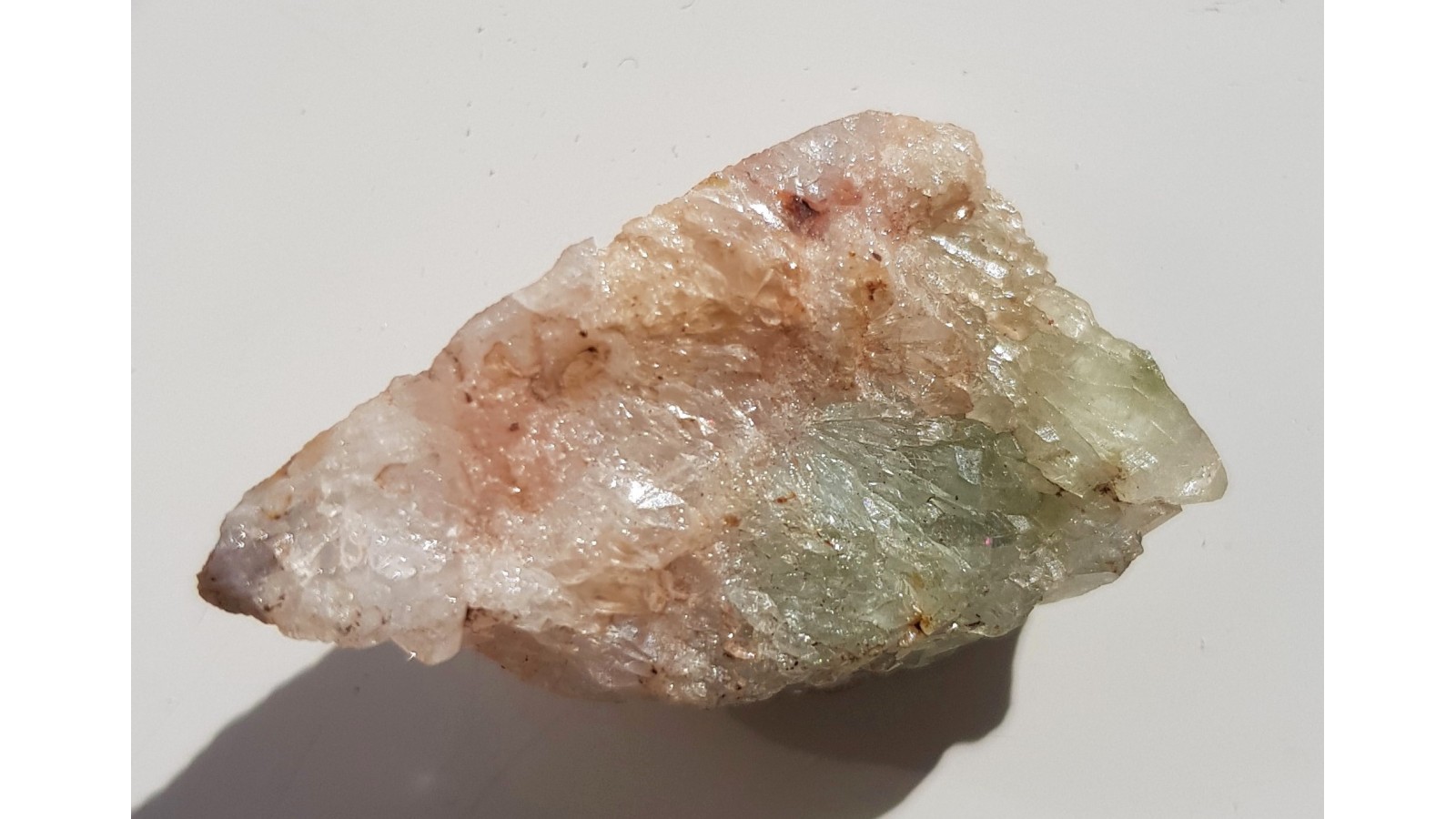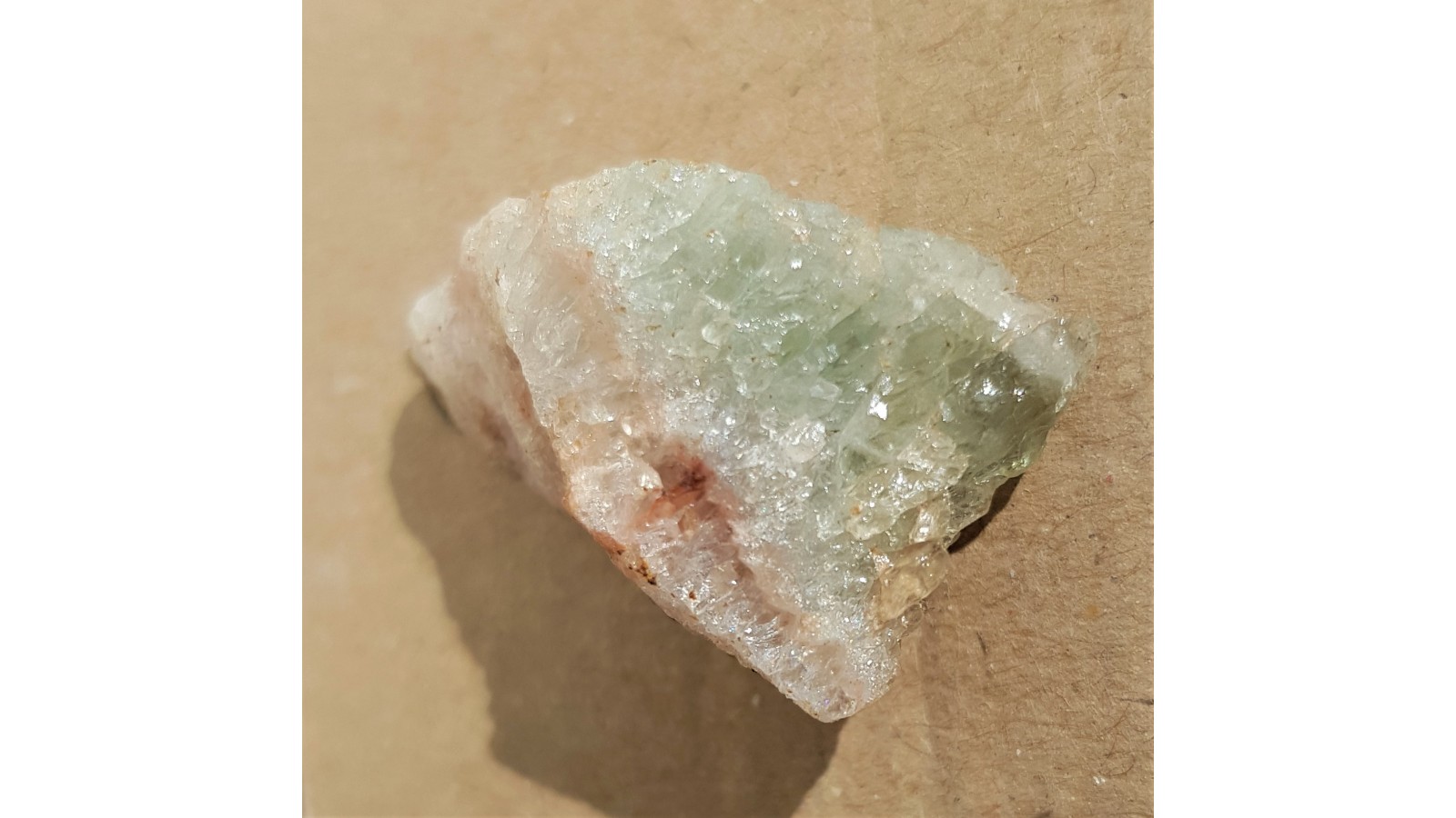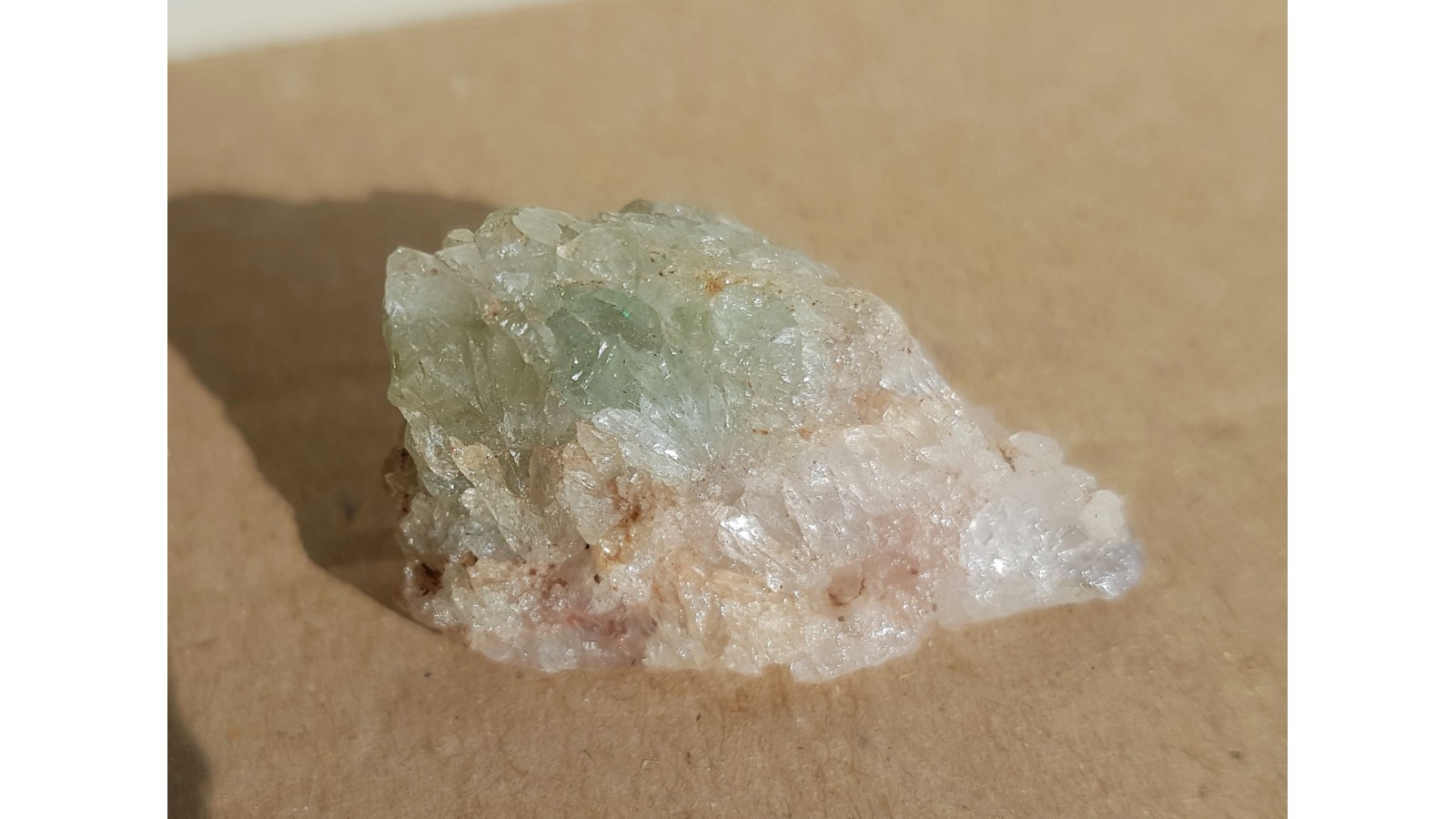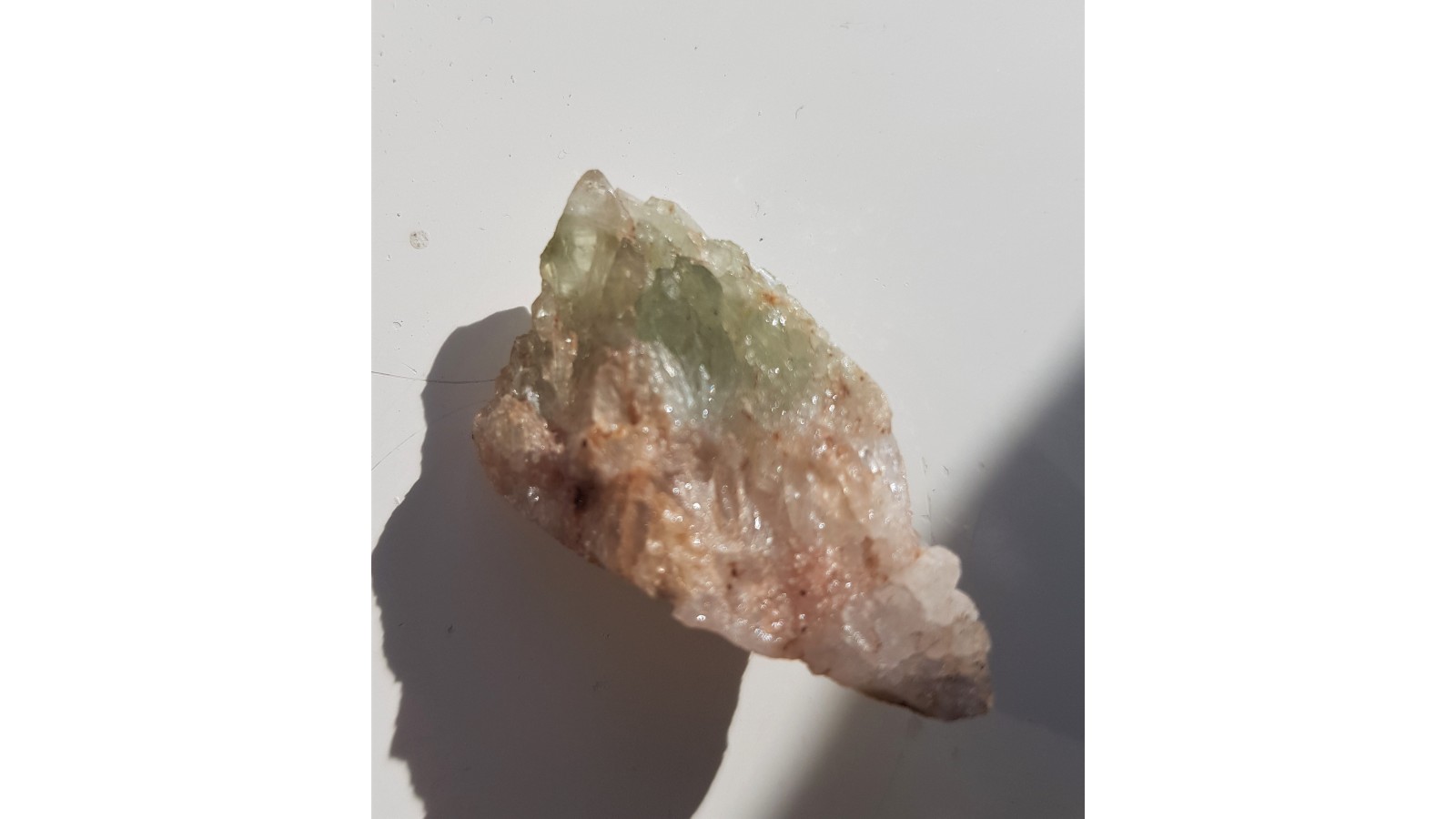 Prasiolit jako fragment geody z melafirów z Suszyny k. Kłodzka. Całkowicie naturalny, bez obróbki. Niewielki okaz, lecz z wyraźną barwą zieloną oraz z prawidłowo zakończonymi kryształami prasiolitu. Wyjątkowa rzadkość z tej lokalizacji. Polecam.