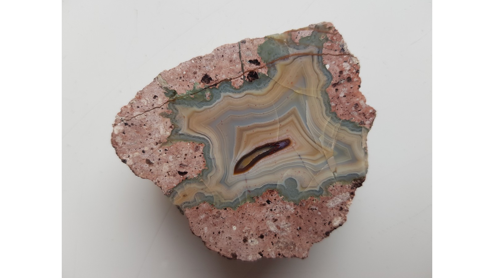 Agat z Nowego Kościoła. Średniej wielkości okaz, w pięknych pastelowych barwach. Bardzo estetyczny. Idealny poler, strona przeciwna naturalna. Polecam.