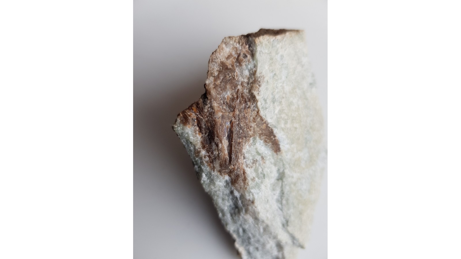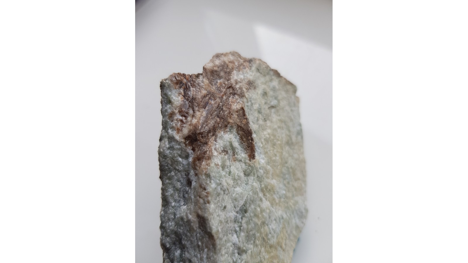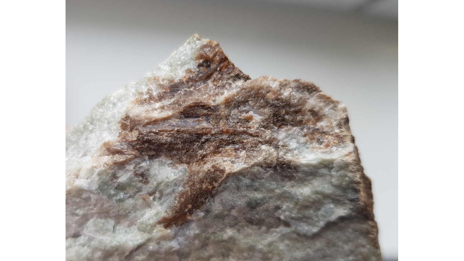 Wiązki kryształów wezuwianu barwy brązowej wrośnięte w jasną skałę wapniowo-krzemianową z Samborowiczek k. Strzelina. Kryształy wykazują pionowe prążkowanie, ściany z połyskiem. Widoczne przerosty wachlarzowatych skupień minerału. Pod lupą przeświecające. Okaz bardzo estetyczny, kontrast barwny między kryształami wezuwianu i skałą otaczającą. Wezuwiany krystalizowały w obrębie warstwewek bądź gniazd wezuwianowych w skale. Polecam.