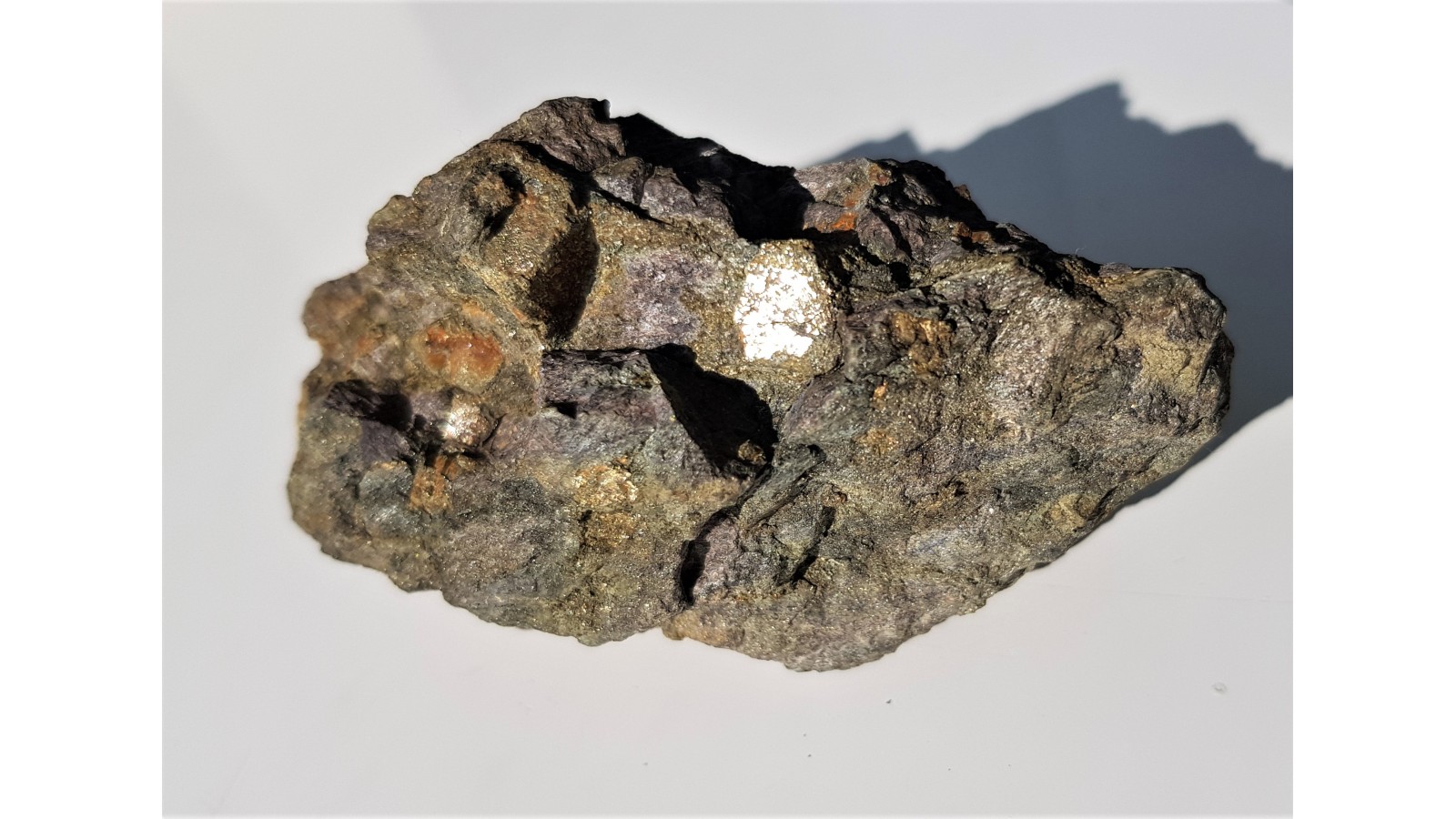 Ciemny łupek przerośnięty licznymi kryształami pirytu z Rędzin k. Kamiennej Góry