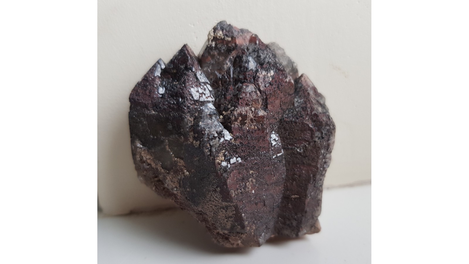 Zrost wielu błyszczących, nieuszkodzonych kryształów kwarcu żelazistego/dymnego z Rudaw Janowickich. Polecam.
