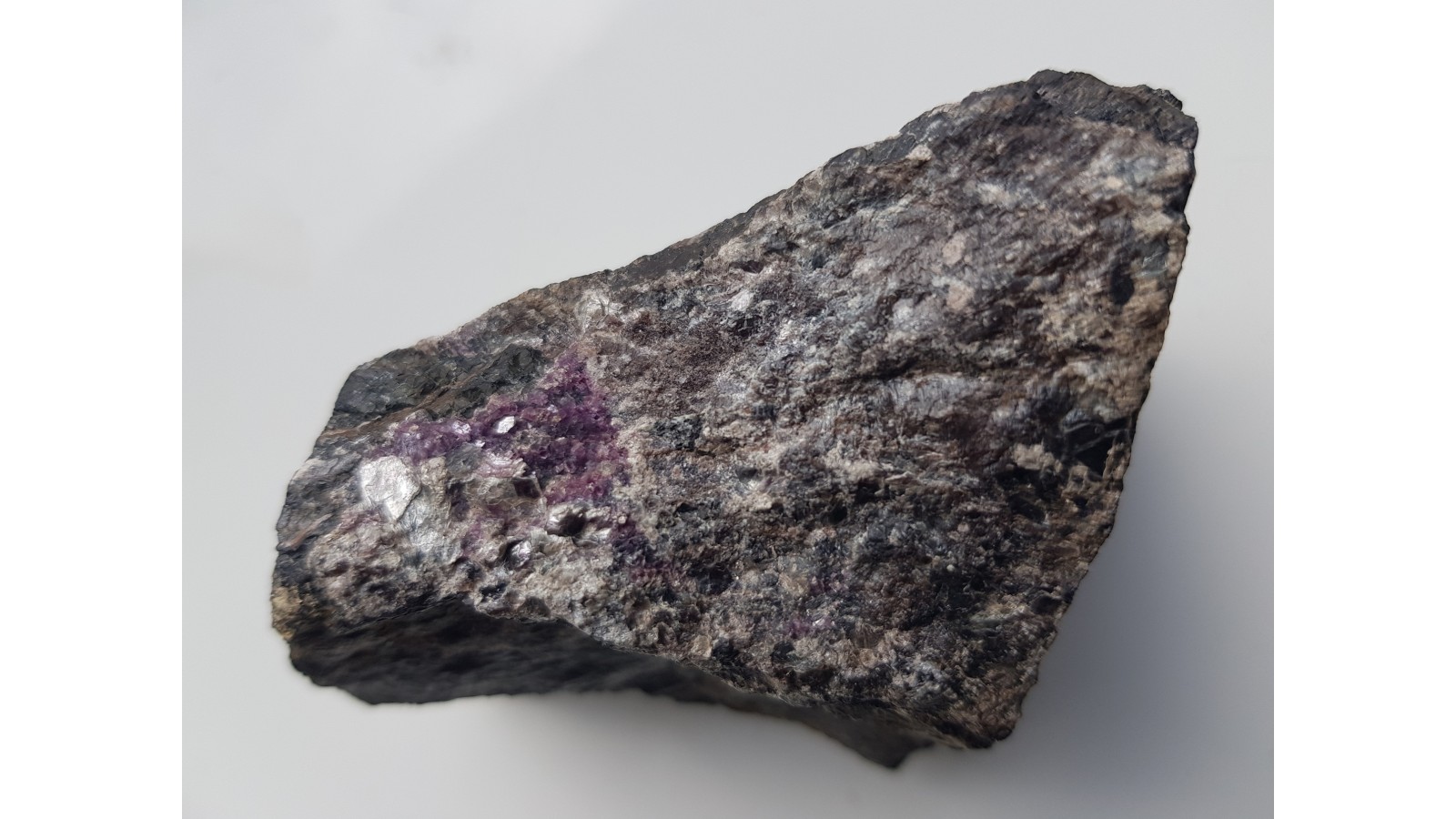 Rzadkość mineralogiczna Sudetów - amesyt chromowy w postaci kryształków na chromicie o intensywnej barwie fioletowej. Polecam.