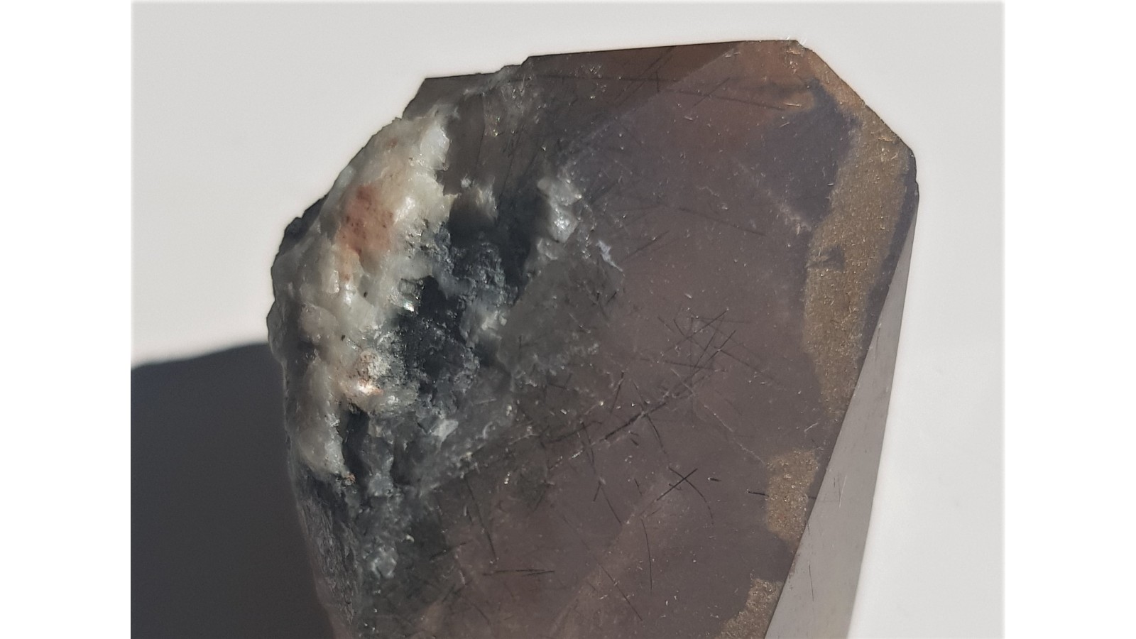 Smoky quartz with inclusions of tourmaline crystal from Sudetes