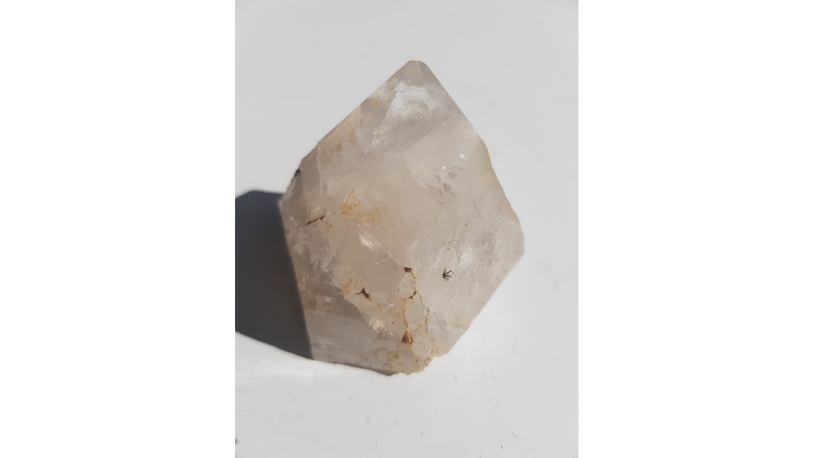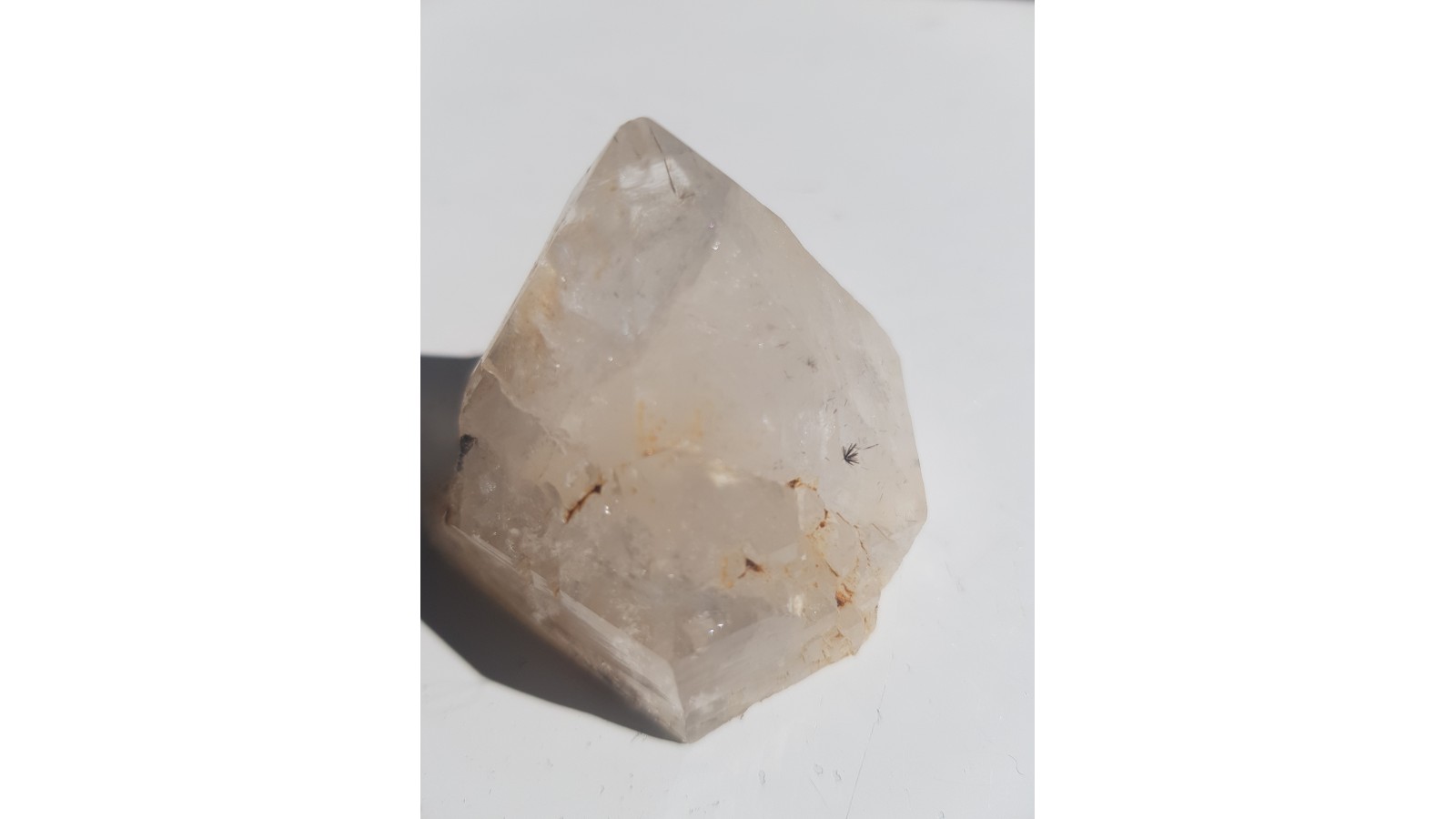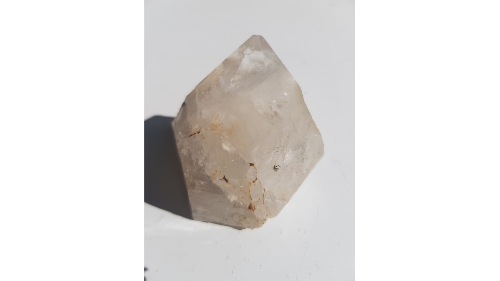 Wiązka pięknie wykształconych kryształów brązowozielonkawego allanitu jako wrostki w krysztale górskim z Morawy k. Strzegomia. Skupienie doskonale widoczne gołym okiem, bez powiększenia. Allanit jest bardzo rzadko występującą odmianą epidotu zawierającą pierwistki ziem rzadkich (głównie Ce, La). Nowe, unikatowe znalezisko. Rzadkość mineralogiczna. Polecam.