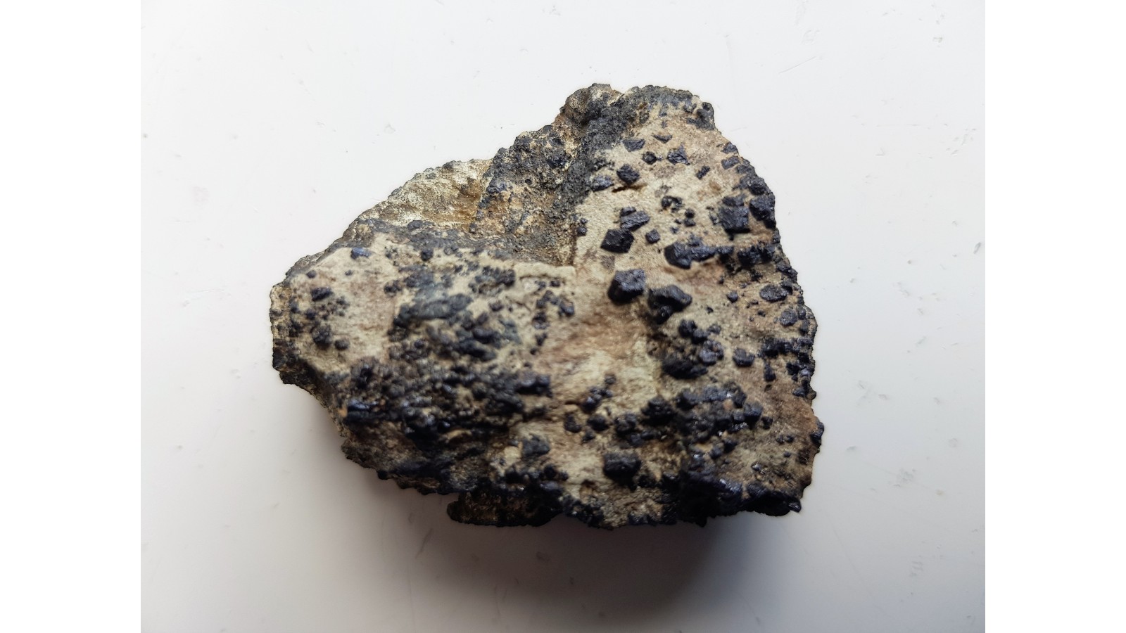 Kryształy magnetytu z Miedzianki k. Janowic Wlk. w skale macierzystej. Średniej wielkości okaz, dobrze wykształcone kryształy, estetyczny. Polecam.