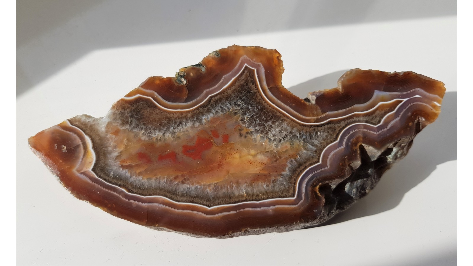 Piękny agat rzeczny o kontrastowym zabarwieniu, niespękany. Unikatowy okaz ze żwirowni Nowe koło Lwówka Śląskiego. Strona przeciwna naturalna. Idealny poler. Polecam.