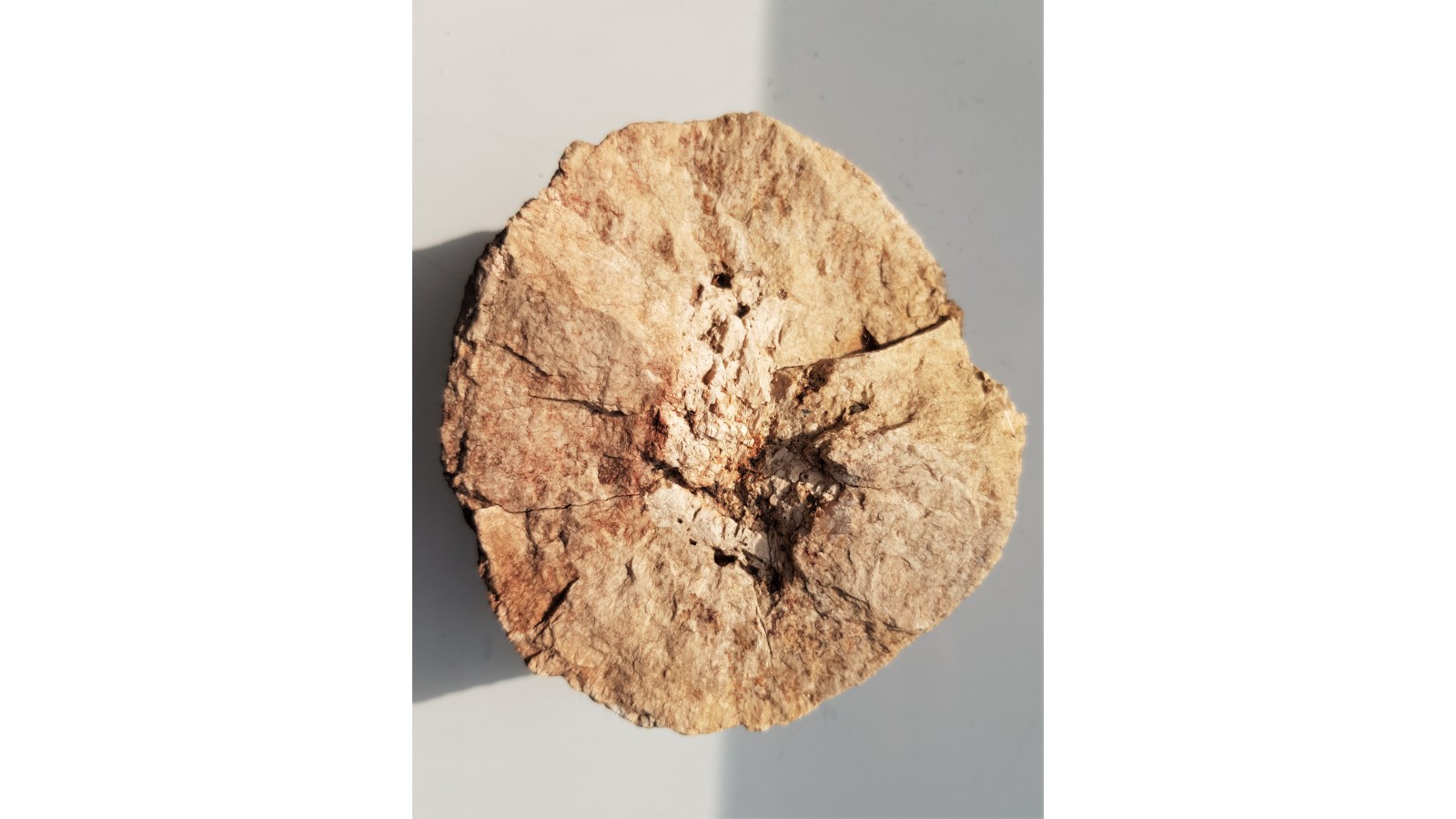 Połowa orbikuli z granitów kulistych okolic Jeleniej Góry. W środku kryształ skalenia potasowego. Okaz okrągły, bez ubytków, wyrazisty,nie szlifowany. Druga strona naturalna, regularna, kulista. Polecam.