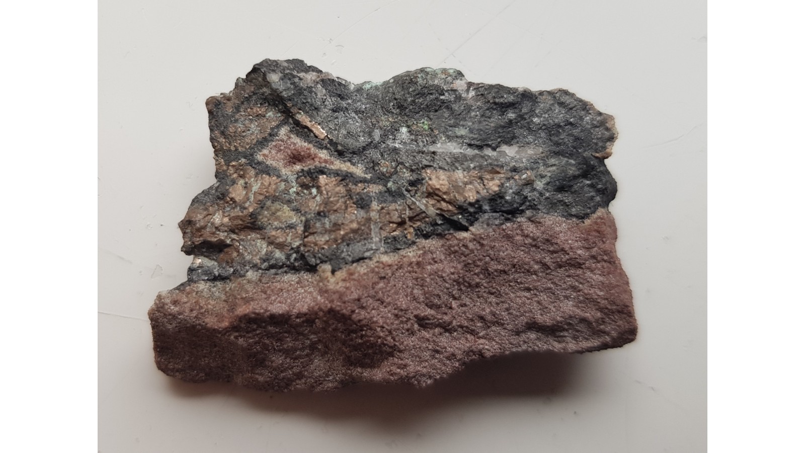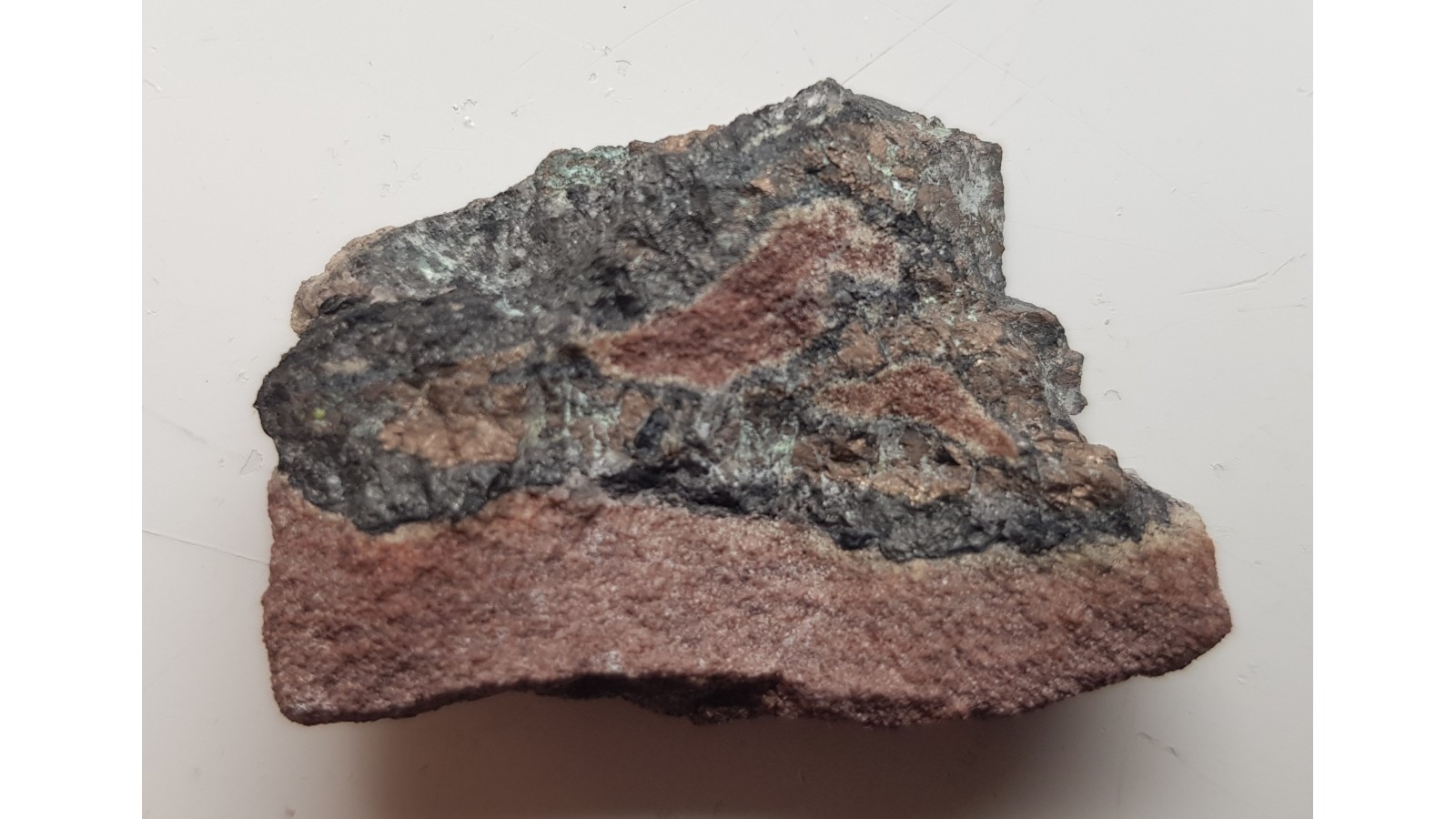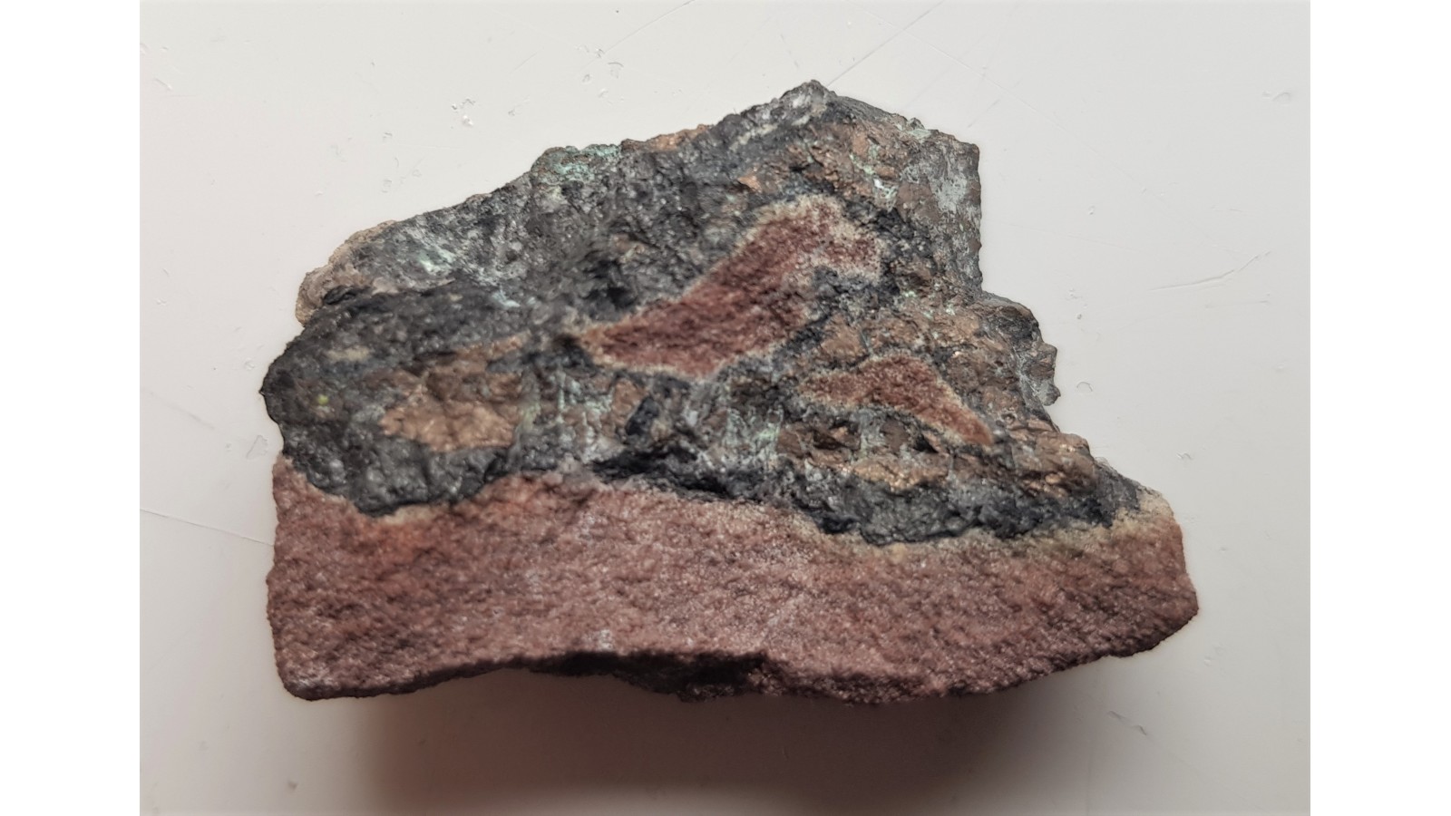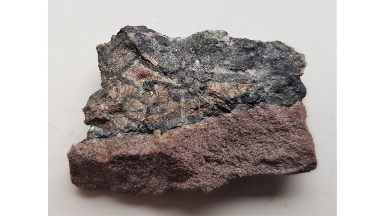 Wyrazisty, rzadki nikielin w postaci dużych wrostków barwy tombakowozłotej w żyle kruszcowej w piaskowcu z KGHM-u. Bardzo rzadki minerał w postaci dużych skupień w Sudetach. Widoczne wtórny retgersyt. Unikat. Polecam.