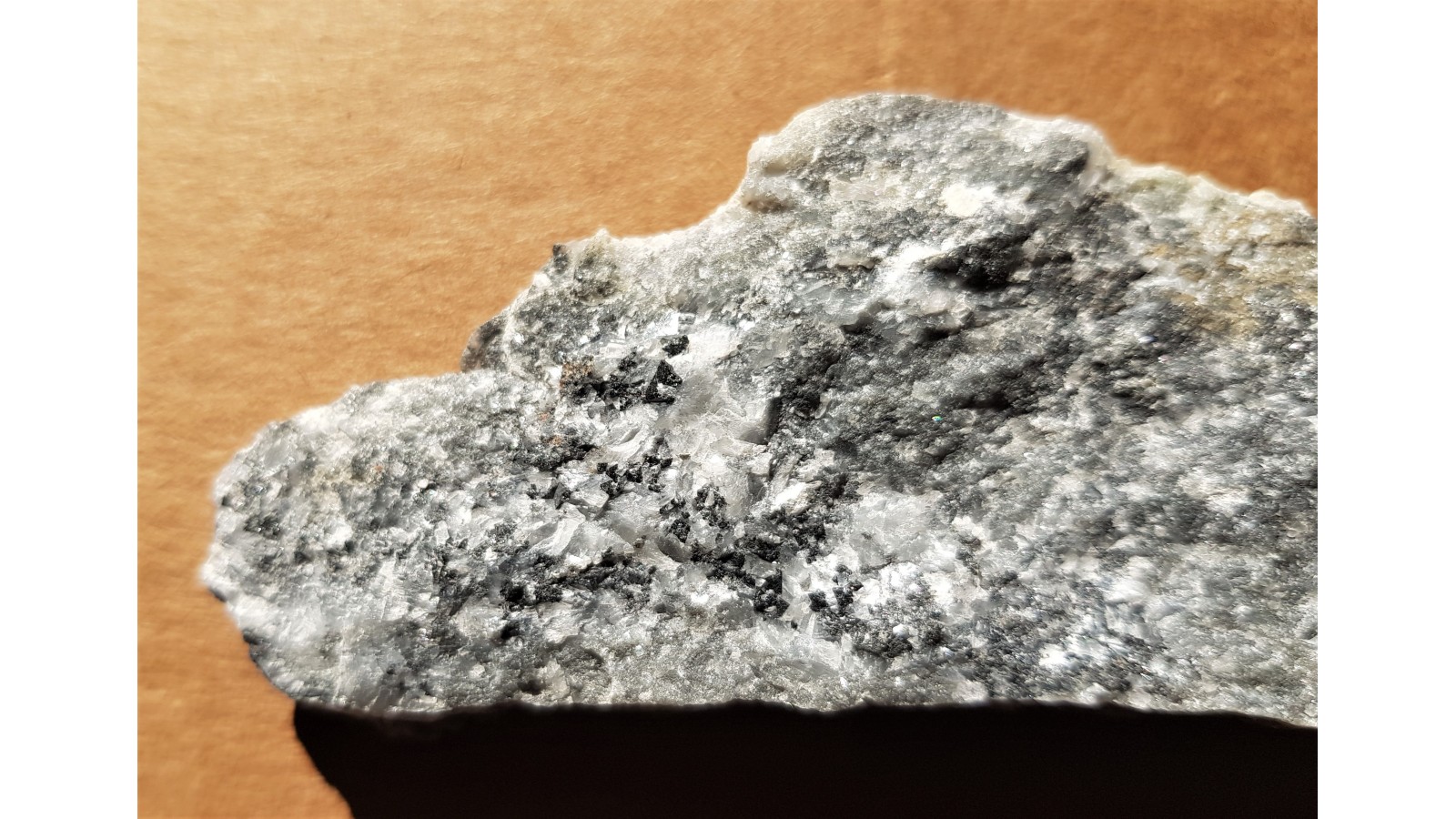 Okaz marmuru dolomitowego z licznymi, ciemnymi, o połyski szklistym kryształami spienli właściwych (Mg, Al). Ciekawostka mineralogiczna z Sudetów. Jedyne opisane miejsce występowania spineli właściwych in situ w Sudetach (Przegląd Geologiczny 10/2019). Wyjątkowa rzadkość. Polecam.