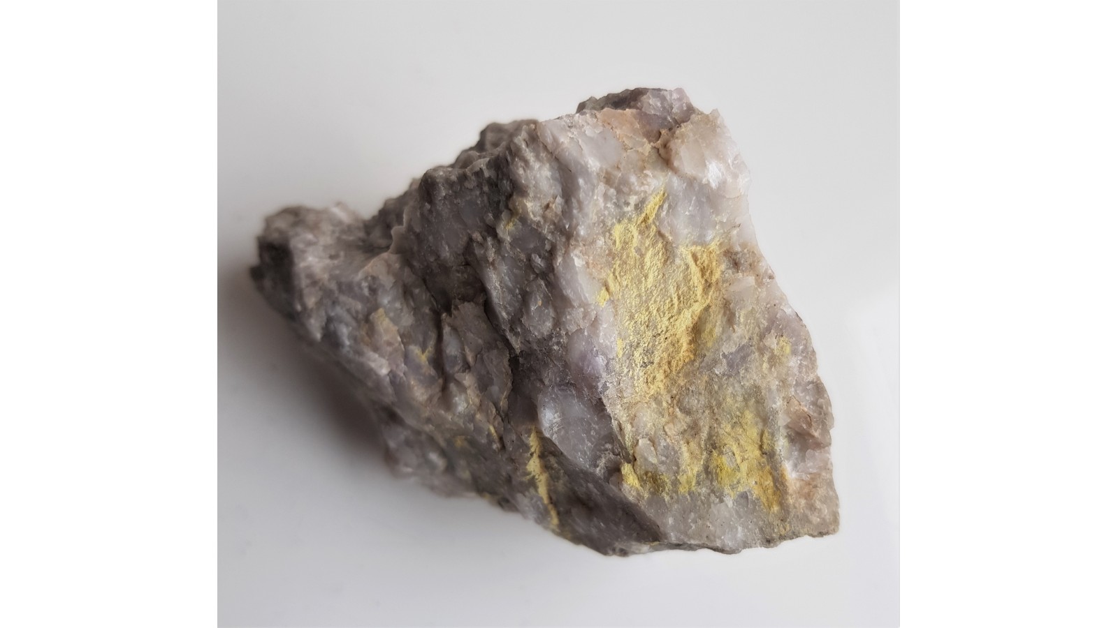 Żółty mottrramit z Kletna. Naloty na żyle kwarcowej. Rzadki wanadan miedzi i ołowiu. Wyrazisty okaz. Unikat mineralogiczny. Polecam.