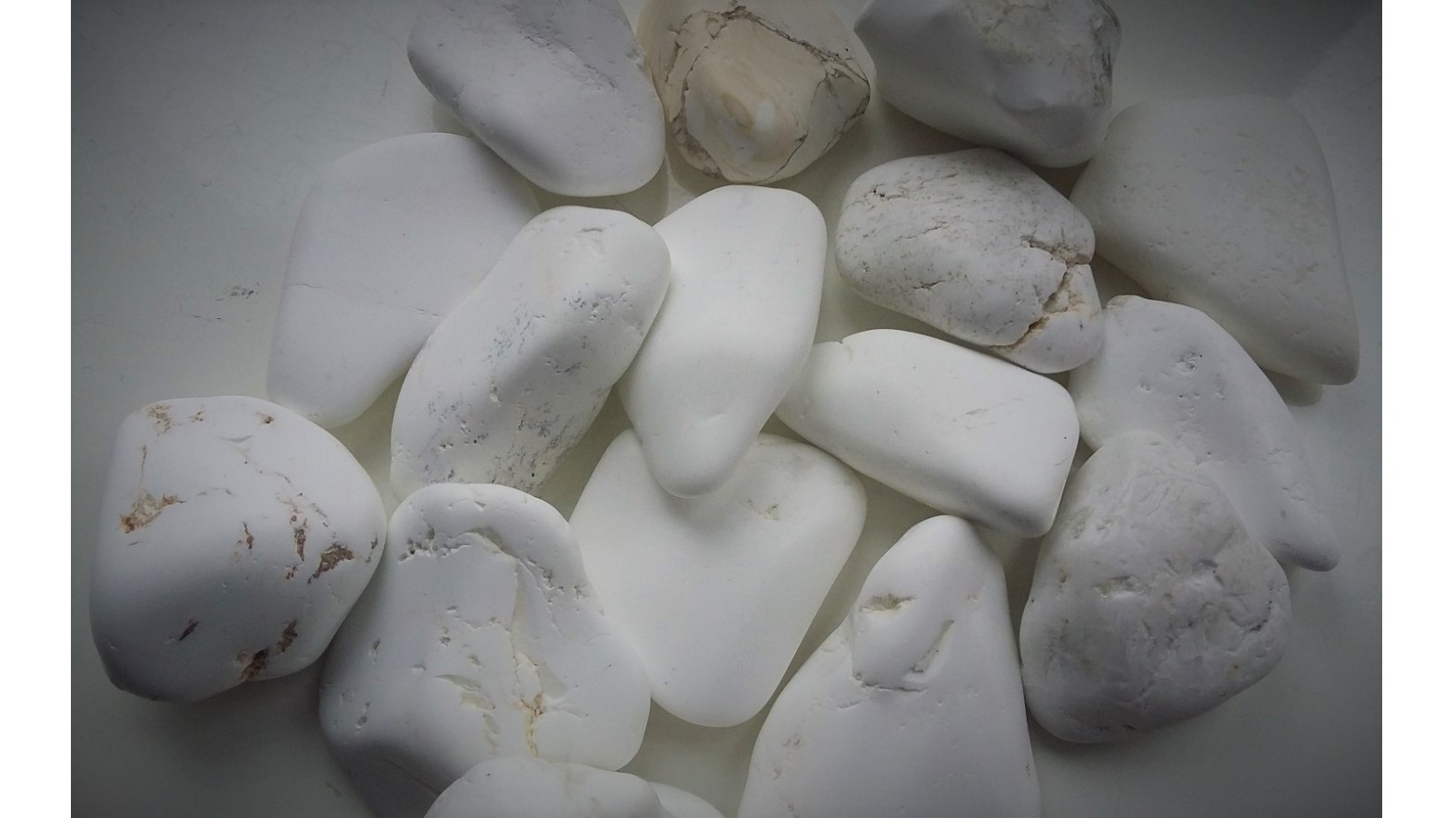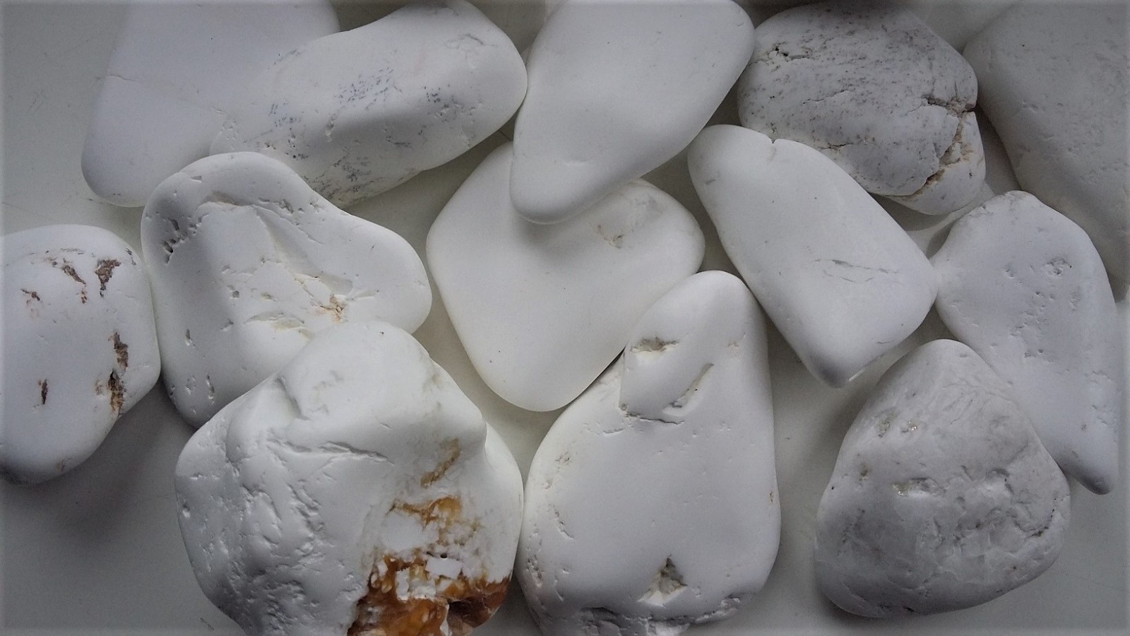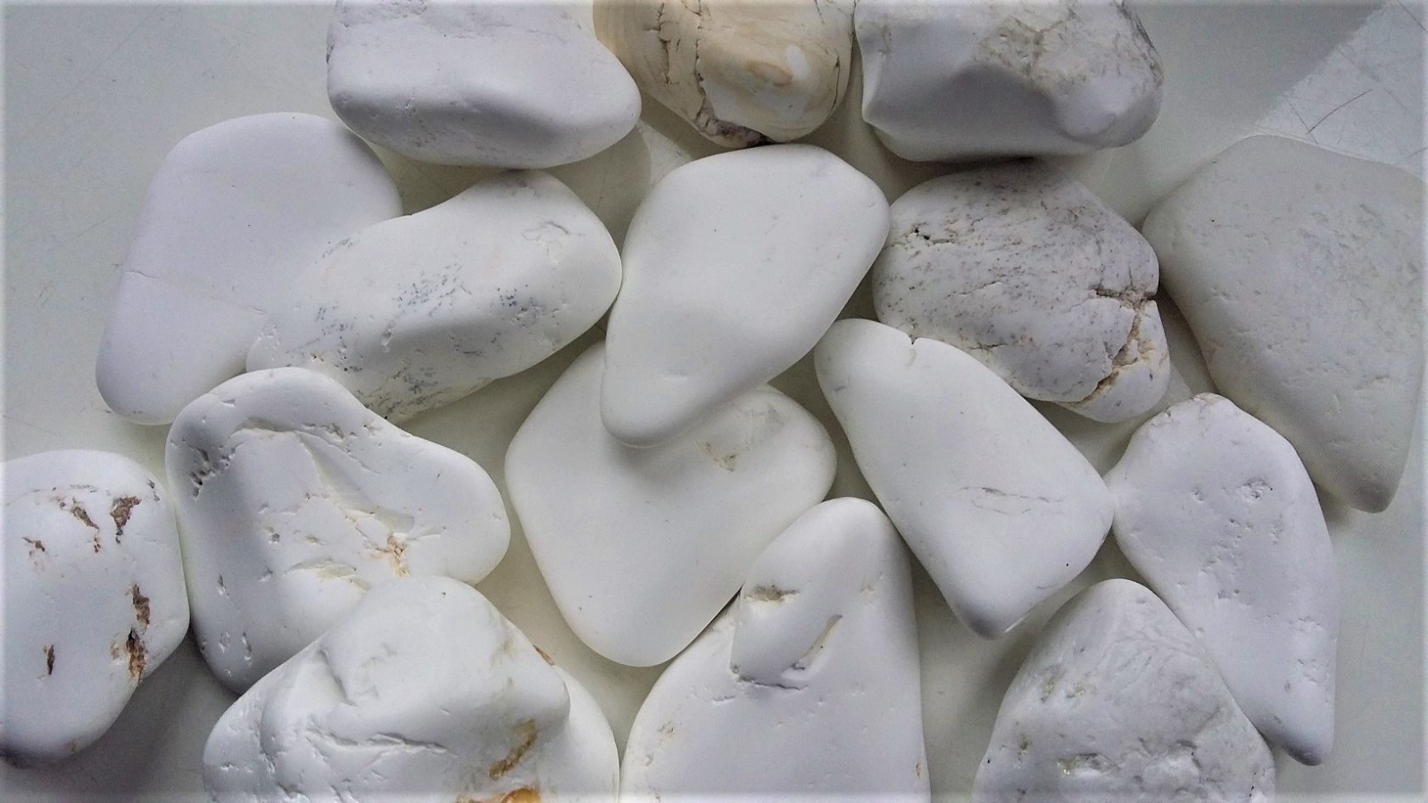 Oferujemy bębnowany, polerowany magnezyt ze złoża Wiry koło Sobótki. Duża bębnówka, ok. 5 cm średnicy każdy. Piękne, białe, polerowane. Cena za sztukę.