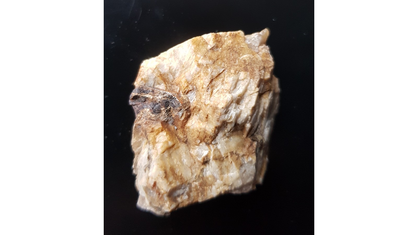 Wyrazisty, duży sarkopsyd (sam sarkopsyd ma długość 1 cm) w skale macierzystej, jedynie w bardzo małym stopniu przeobrażony, świeży, brązowy z miejsca znalezienia tego minerału w Michałkowej w Górach Sowich. Absolutna rzadkość, miejesce całkowicie wyeksploatowane. Polecam.