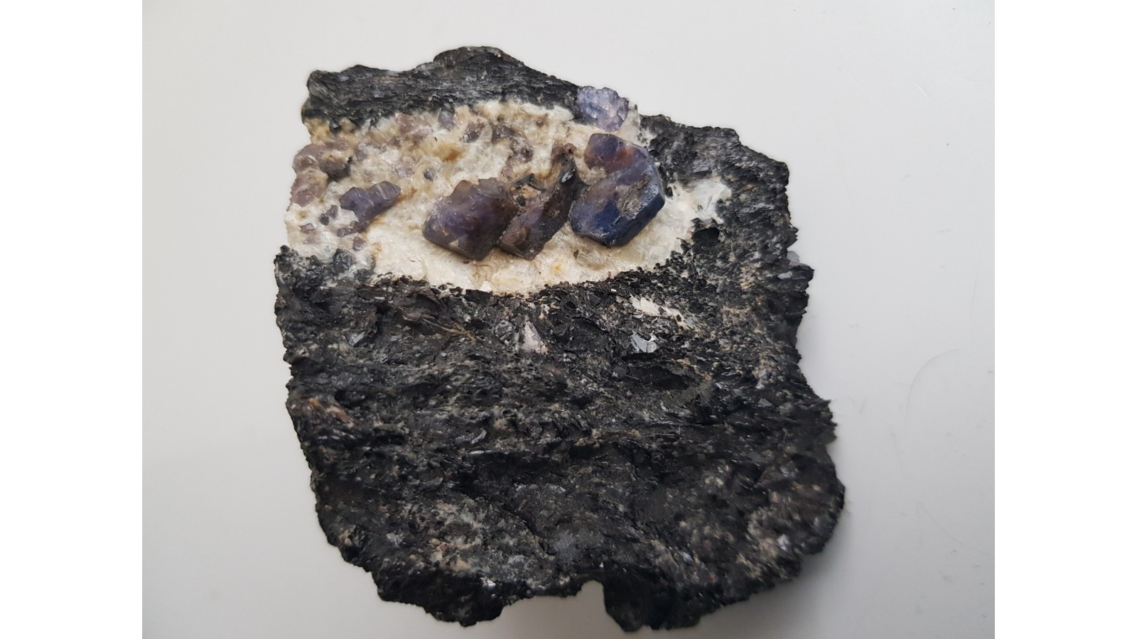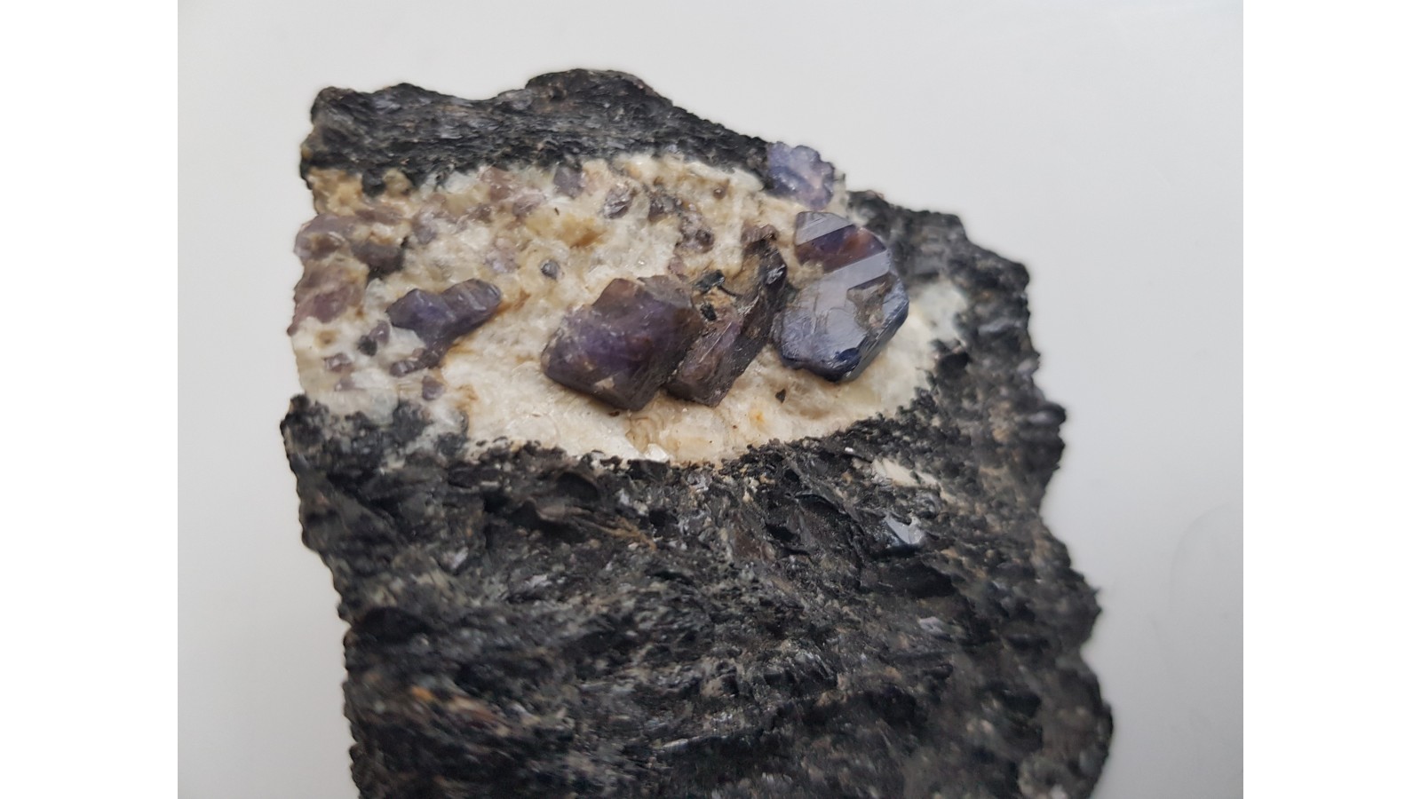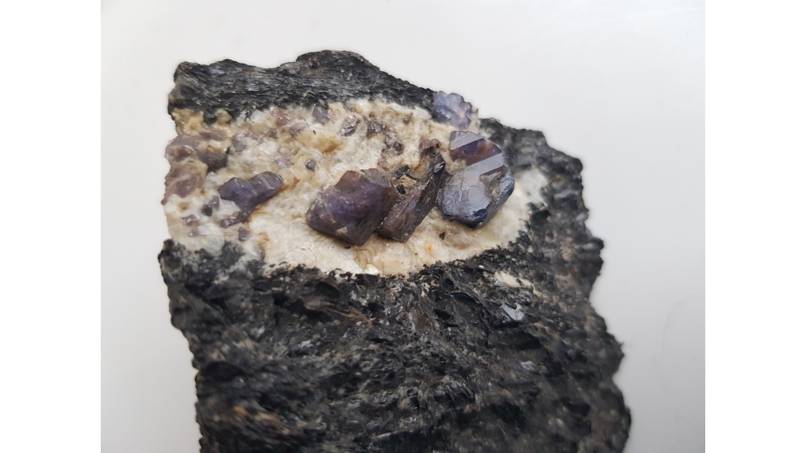 Piękny okaz dwubarwnych szafirów w skale macierzystej z Madagaskaru. Kryształy całe, nieuszkodzone. Obok barwy szafirowej strefy czerwone. Okaz w bardzo niskiej cenie w porównaniu z rynkowymi, po kilkaset dolarów. Polecam.