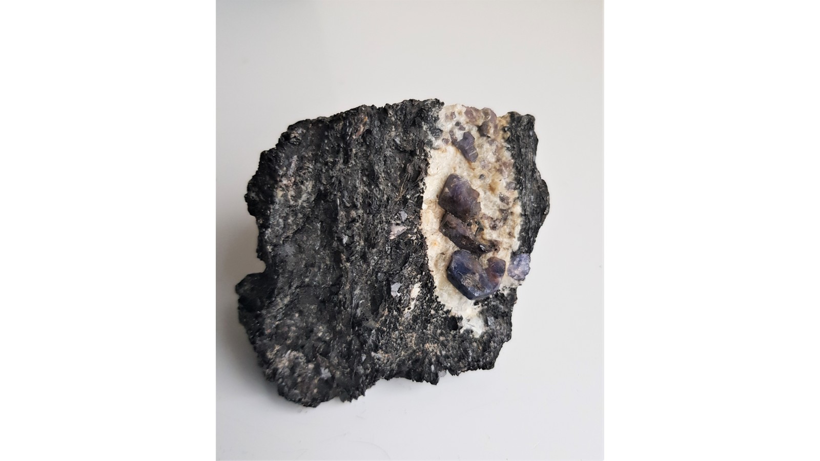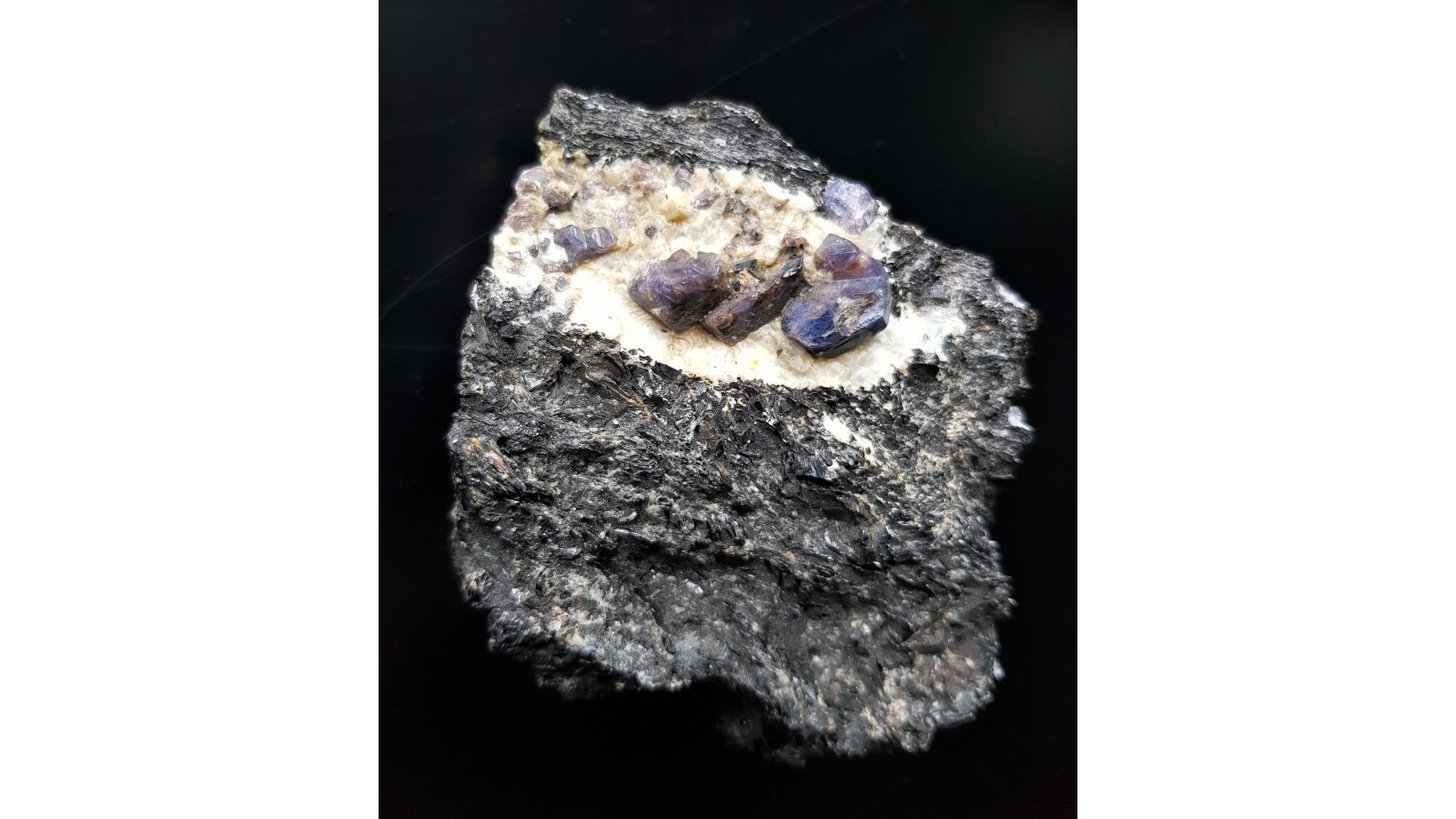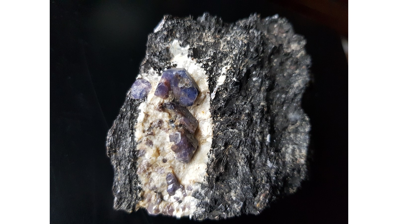 Piękny okaz dwubarwnych szafirów w skale macierzystej z Madagaskaru. Kryształy całe, nieuszkodzone. Obok barwy szafirowej strefy czerwone. Okaz w bardzo niskiej cenie w porównaniu z rynkowymi, po kilkaset dolarów. Polecam.