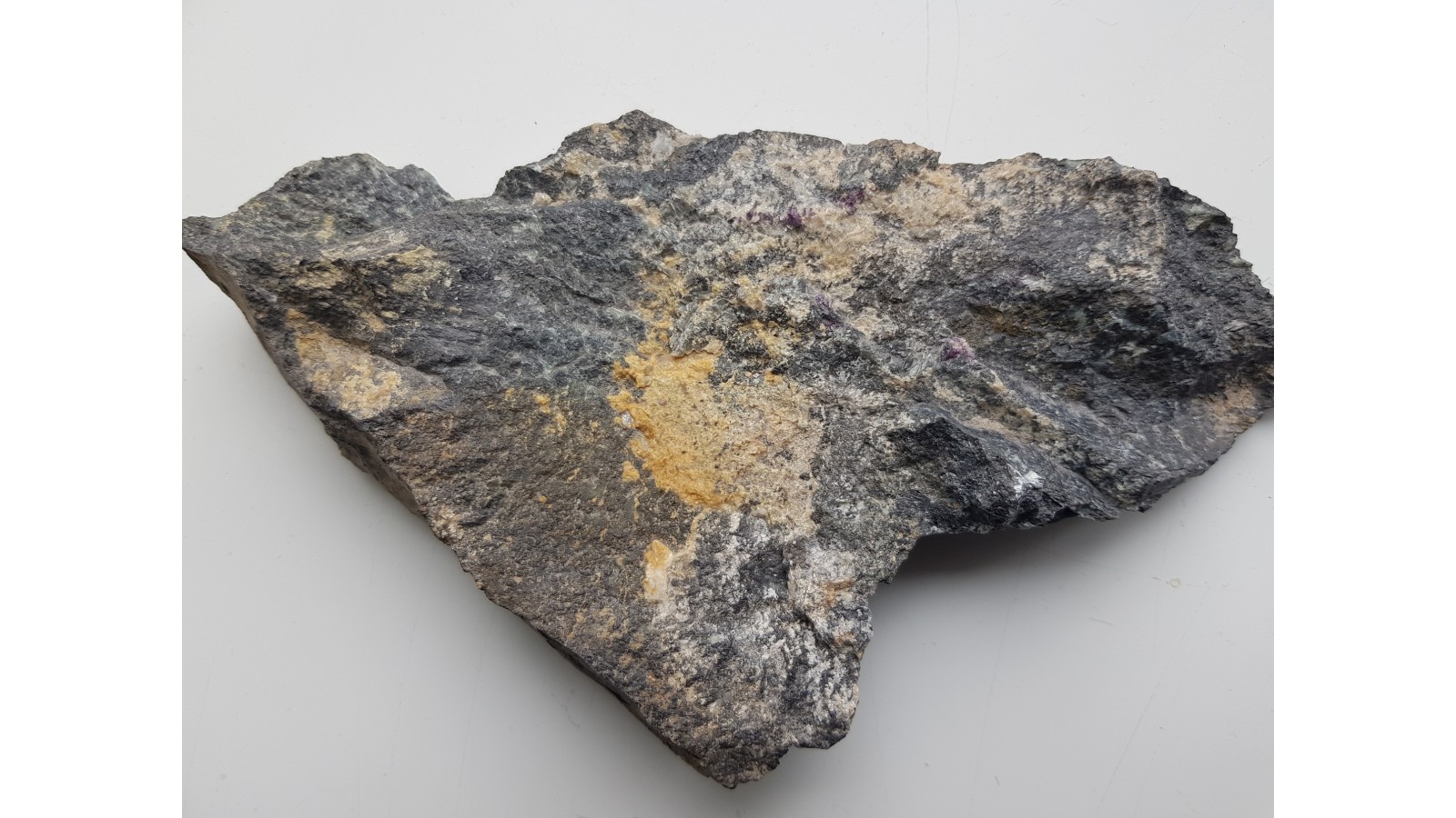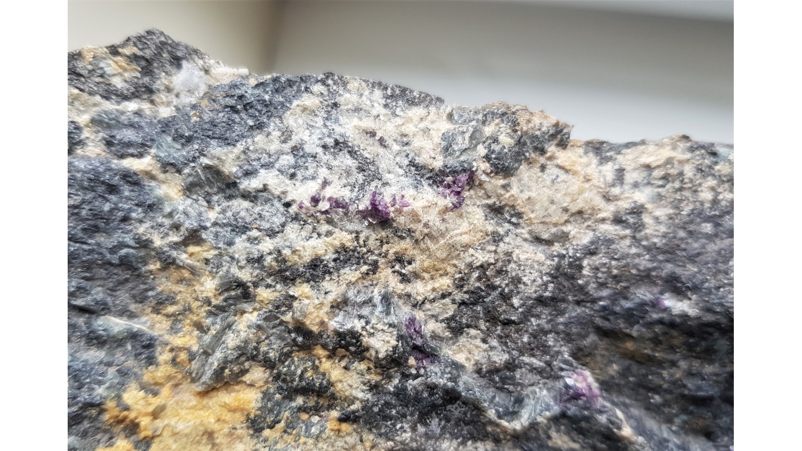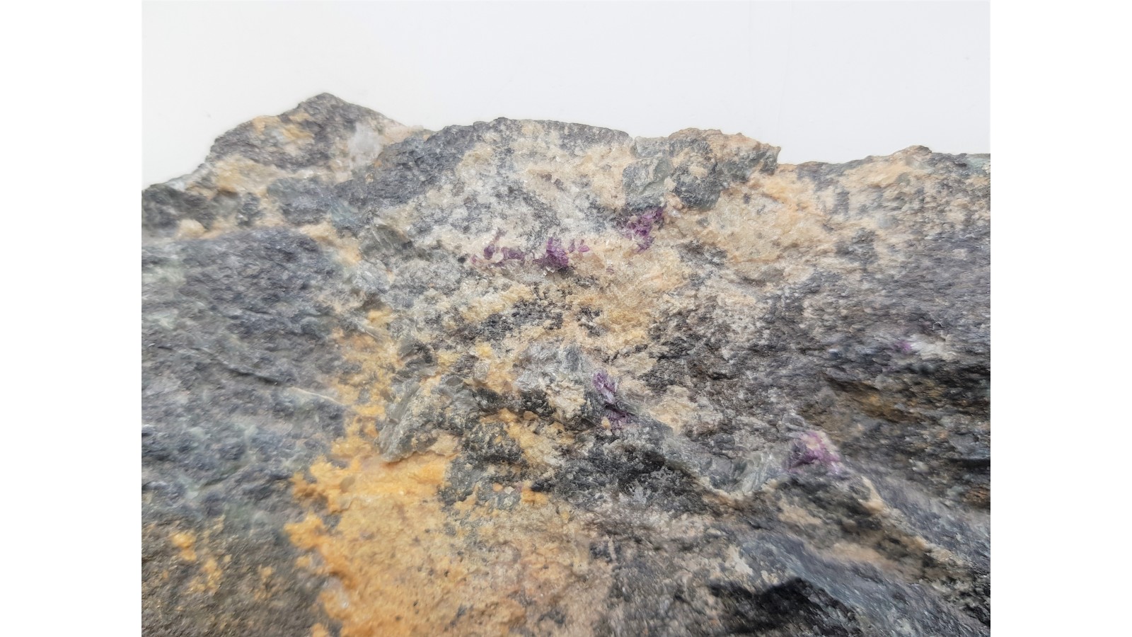 Rzadkość mineralogiczna Sudetów - amesyt chromowy w postaci kryształów na chromicie o intensywnej barwie fioletowej. Duży okaz. Z tyłu docięty, aby usunąć nadmiar skały. Polecam.