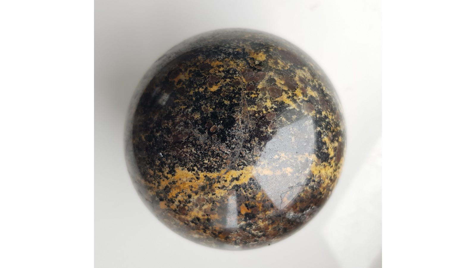 Polerowana kula z amfibolitu granatowego/ciemnego granulitu z Gór Sowich