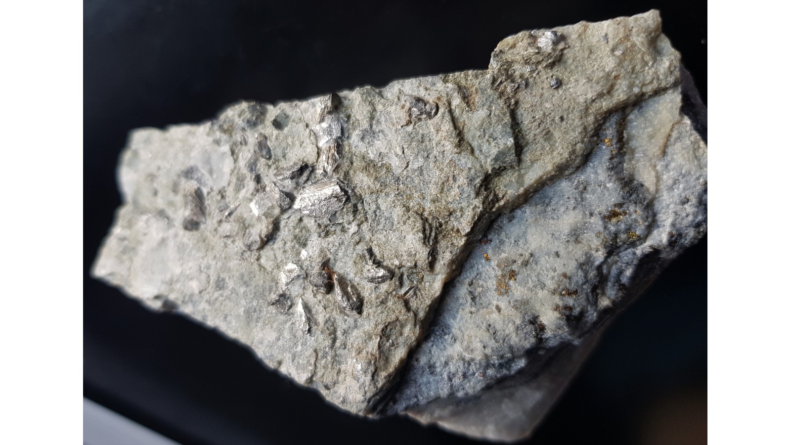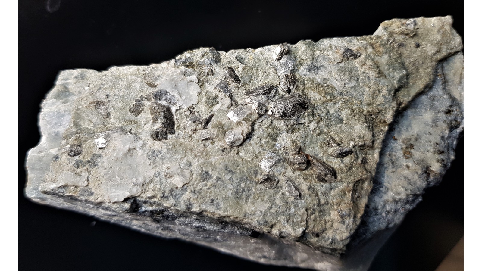 Duże, pięknie wykształcone i nieuszkodzone kryształy arsenopirytu na skale macierzystej z Radzimowic (Starej Góry). Solidny okaz. Polecam.
