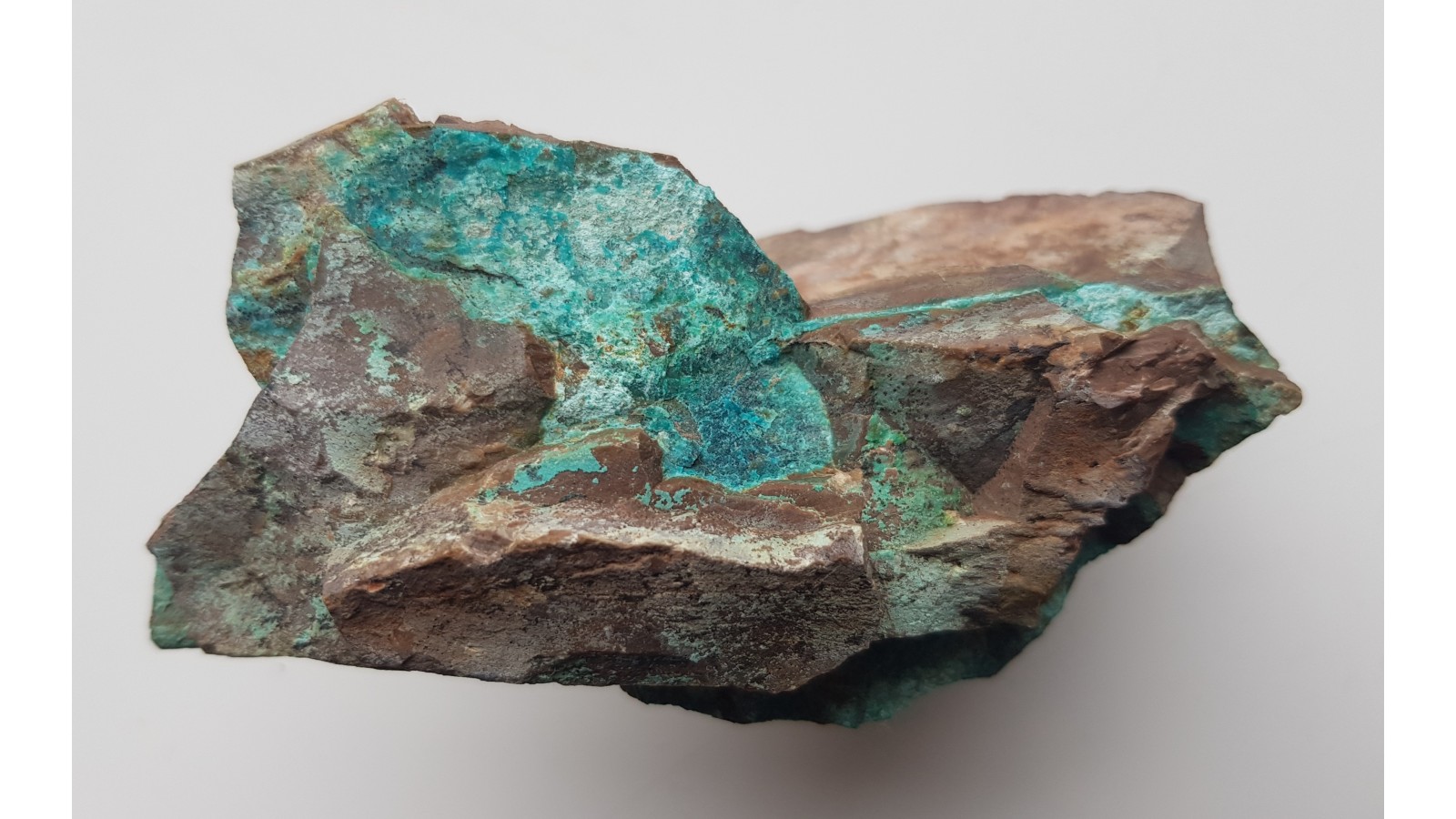Okaz intensywnie zabarwionej chryzokoli na ryolicie z okolic Okrzeszyna. Wyjątkowa lokalizacja. Estetyczny okaz. Polecam.