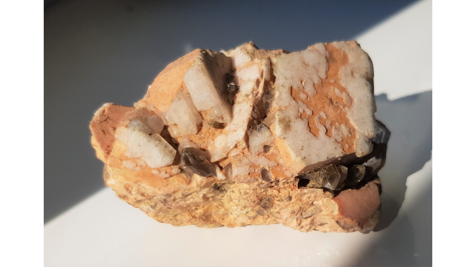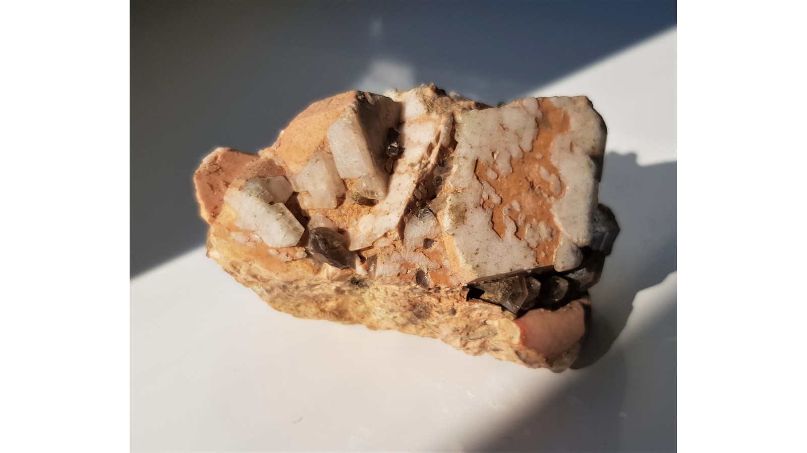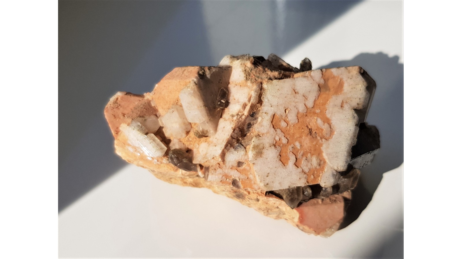 Idealnie wykształcone, bez jakichkolwiek ubytków skalenie potasowe z epitaksjalnie narastającymi kryształami albitu z pegmatytów karkonoskich ze Staniszowa. Bardzo estetyczny okaz średnich rozmiarów. Polecam.