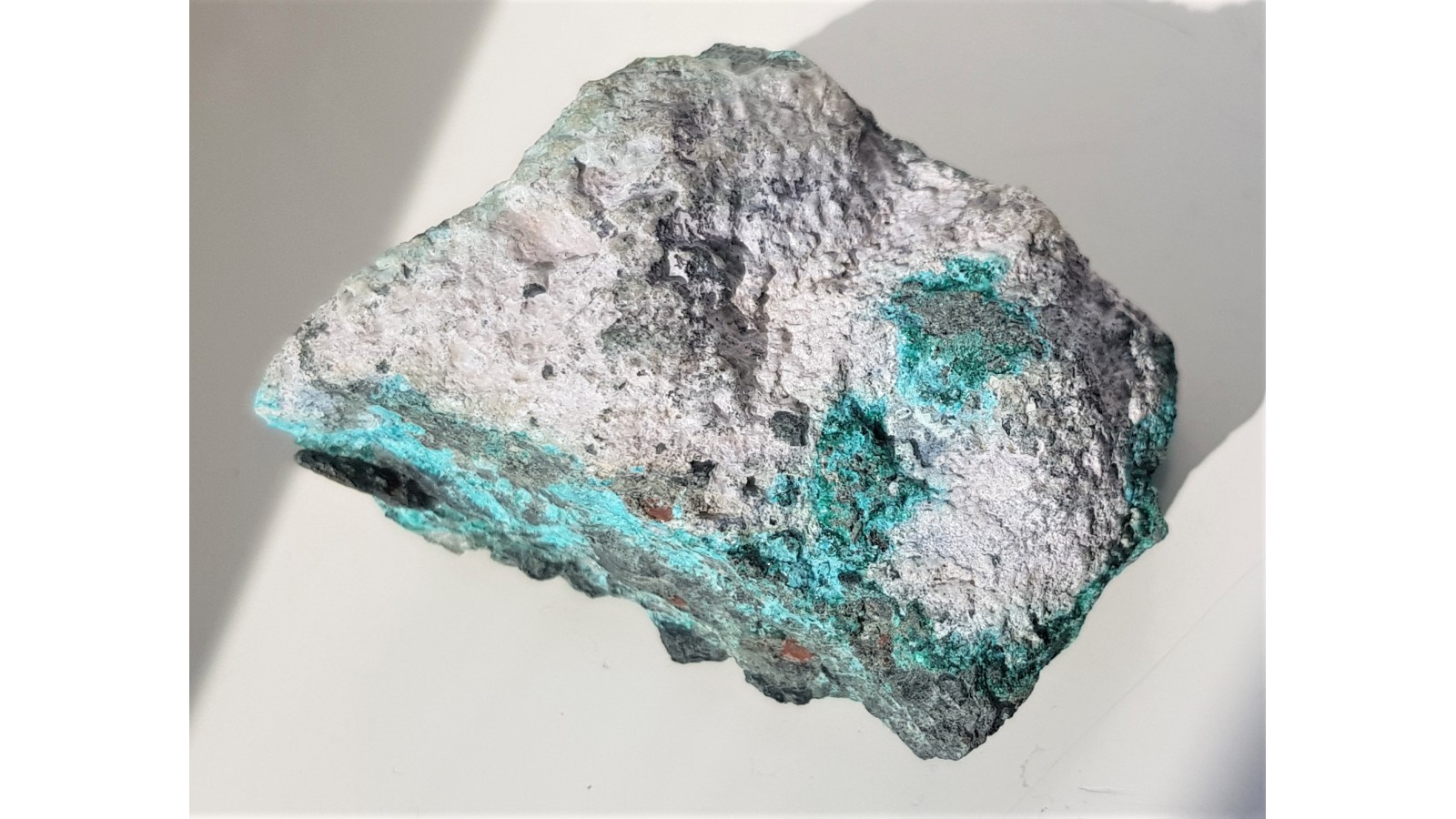 Śnieżnobiały hydrocynkit razem z innymi rzadkimi minerałami: devillinem i langitem z Ciechanowic k. Miedzianki sudeckiej. Ciekawostka mineralogiczna do kolekcji regionalnej. Okaz prezentuje się bardzo estetycznie. Polecam.