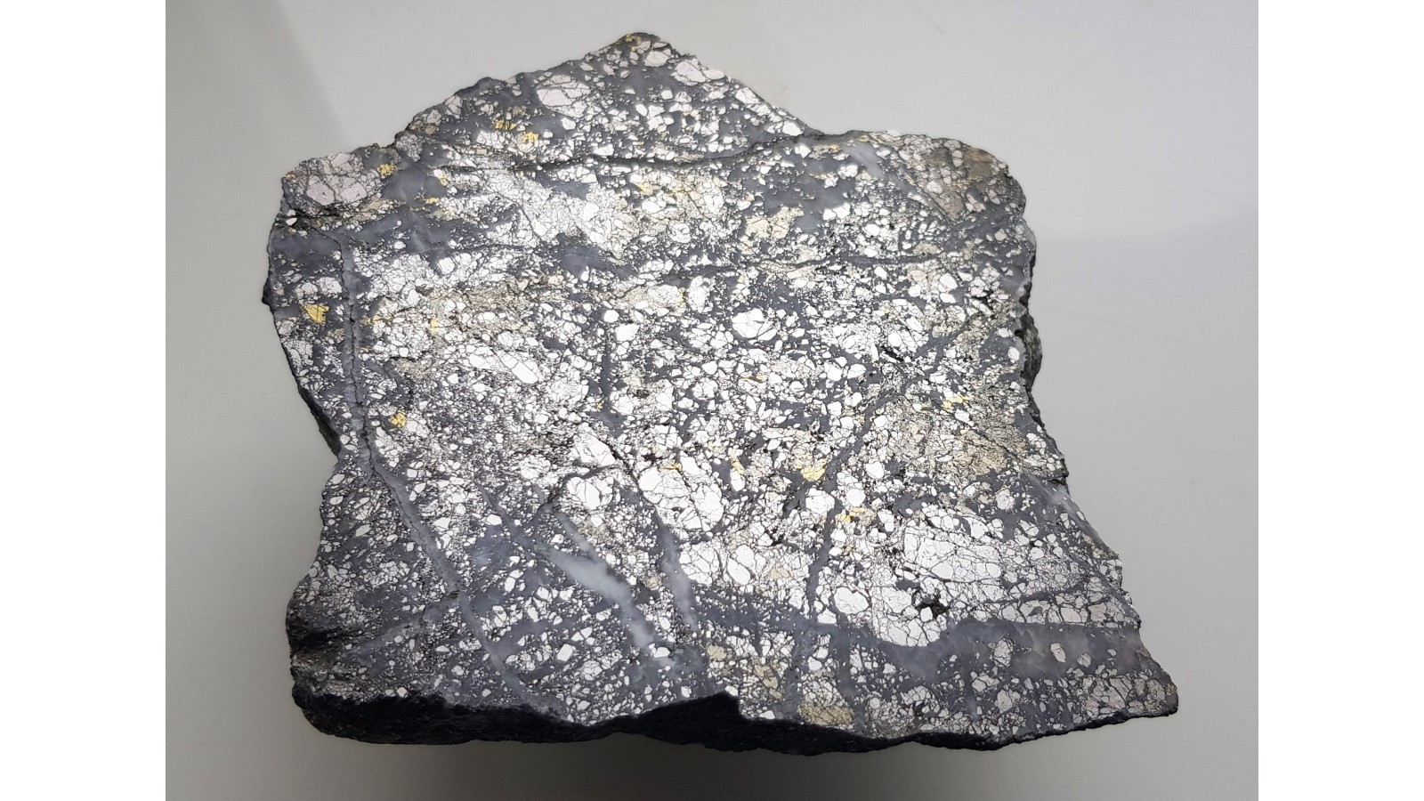 Polerowany okaz rudy arsenopirytowej, w znacznym stopniu masywnej, w kwarcu, z podrzędną ilością chalkopirytu i innych minerałów rudnych. W towarzystwie arsenopirytu w Rędzinach stwierdzano także kasyteryt i inne minerały rudne. Okaz polerowany jednostronnie. Strona przeciwna naturalna. Dawno wyeksploatowane ciało rudne z kopalni dolomitu w Rędzinach k. Kamiennej Góry. Polecam.