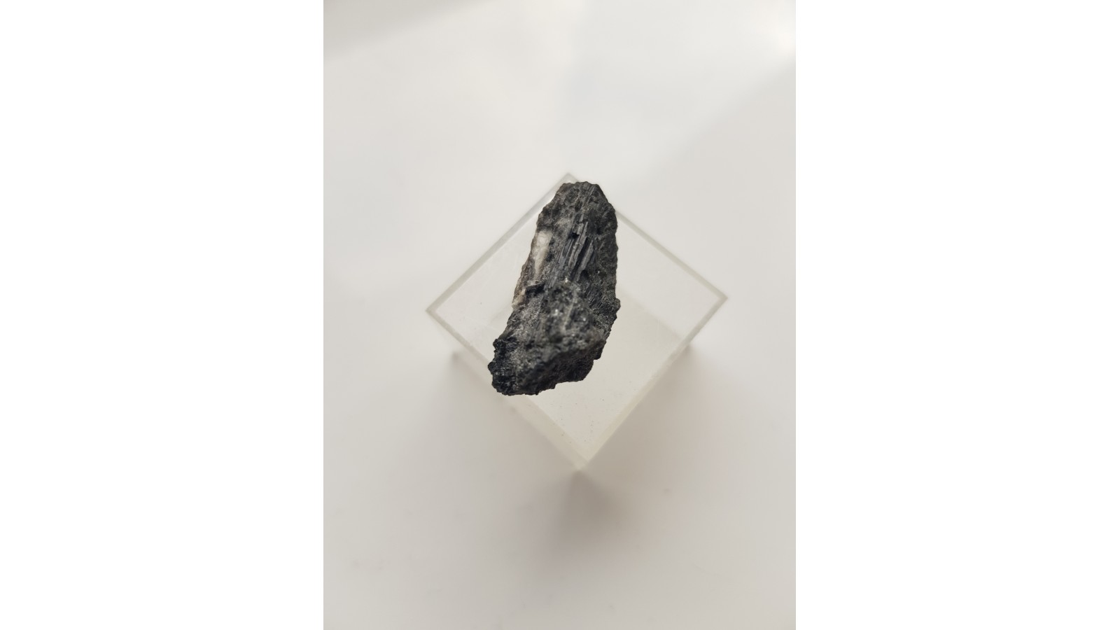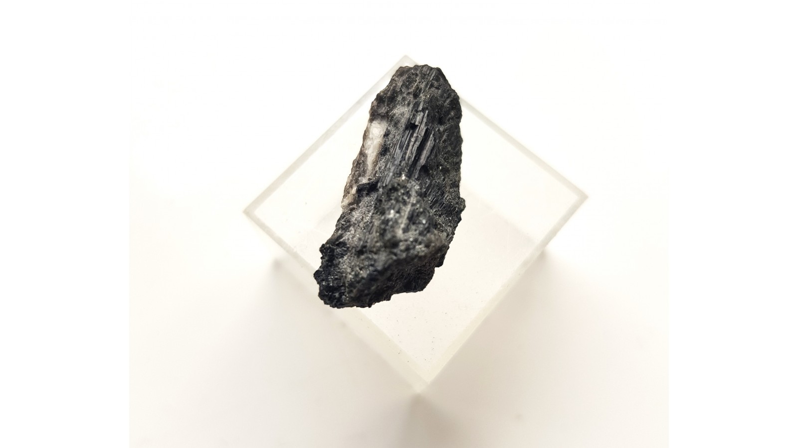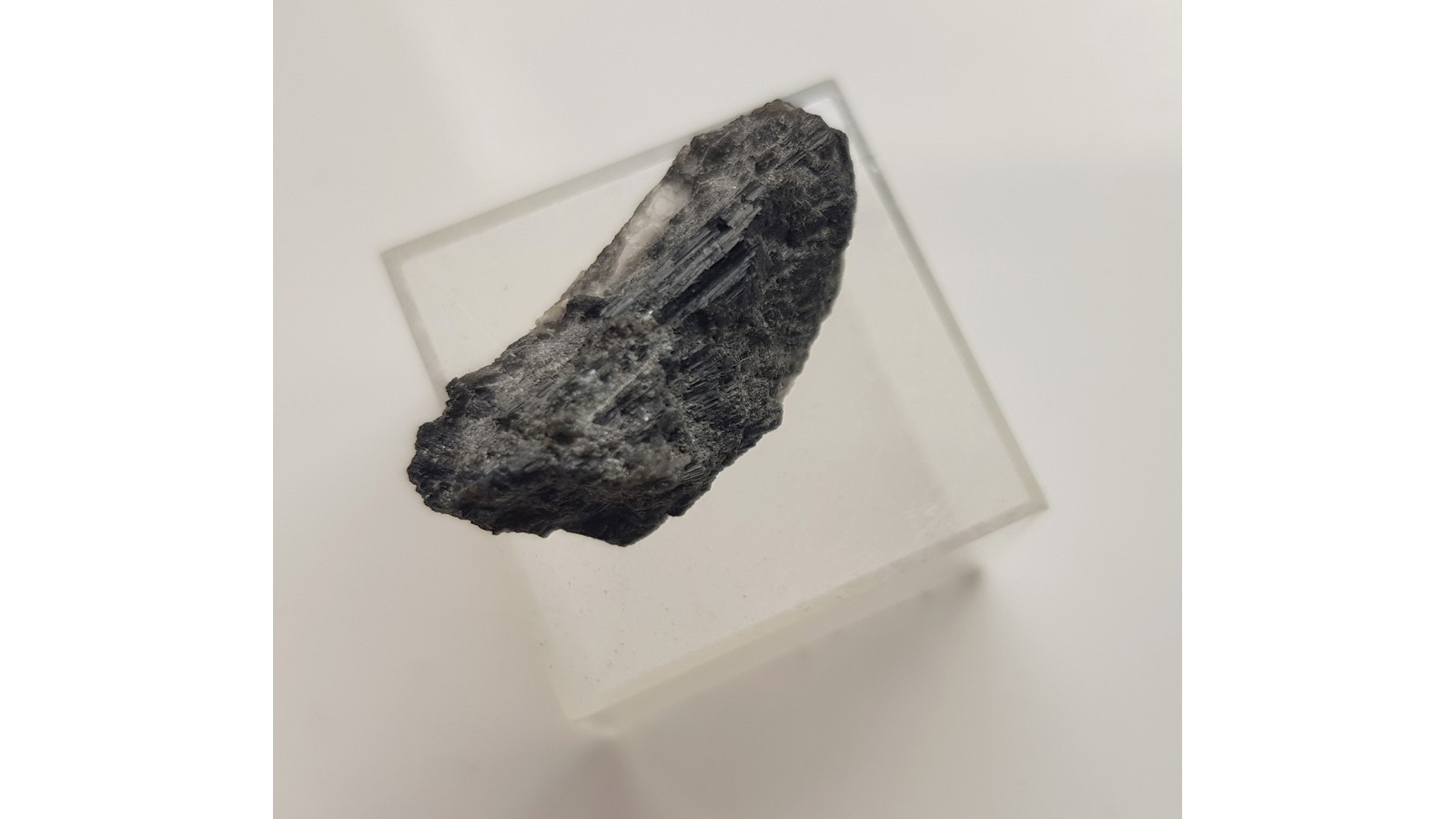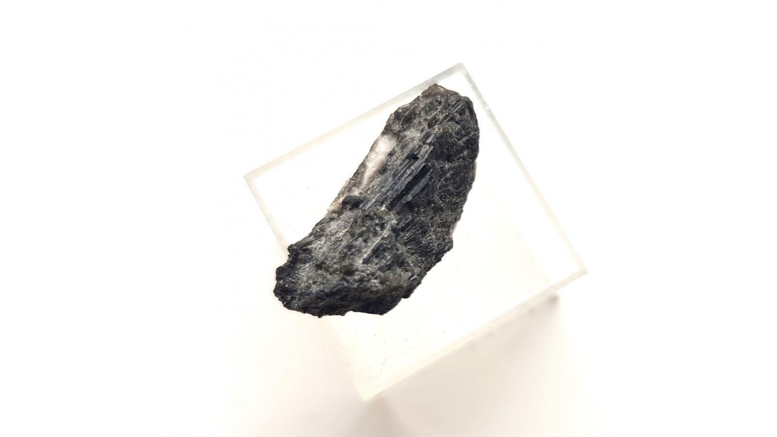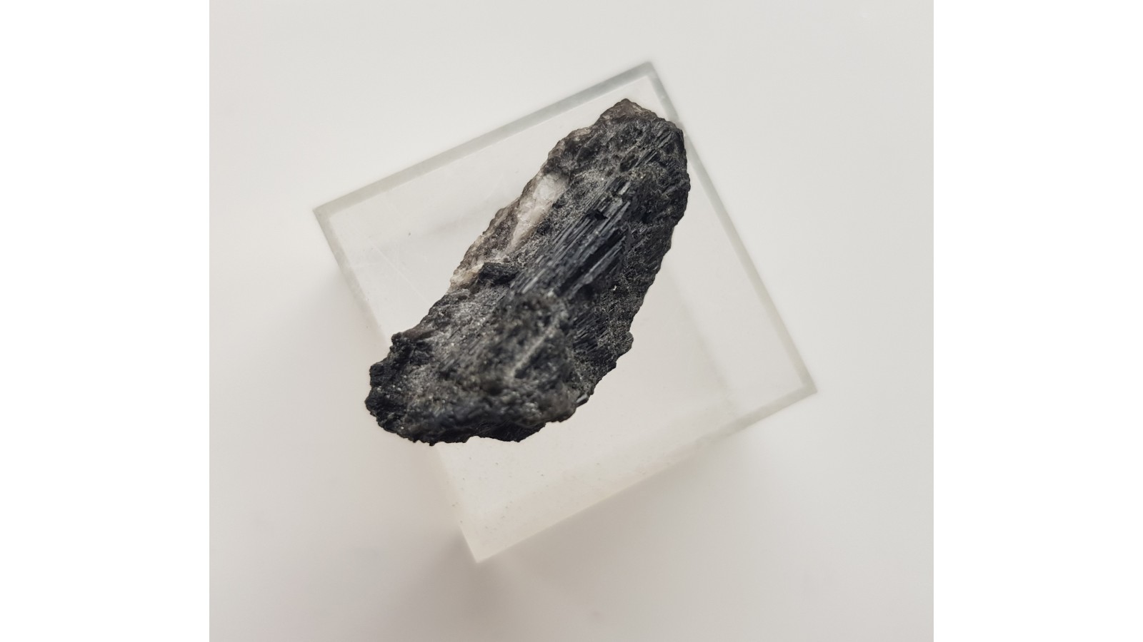 Zrost kryształów turmalinu z pegmatytów strzegomskich (Zimnik). Kryształy na niewielkiej skale macierzystej. Ścianki z połyskiem. Pod lupą przeświecają na kolor brązowozielony. Rzadkość. Turmaliny pojawiają się w pegmatytach strzegomskich sporadycznie. Polecam.