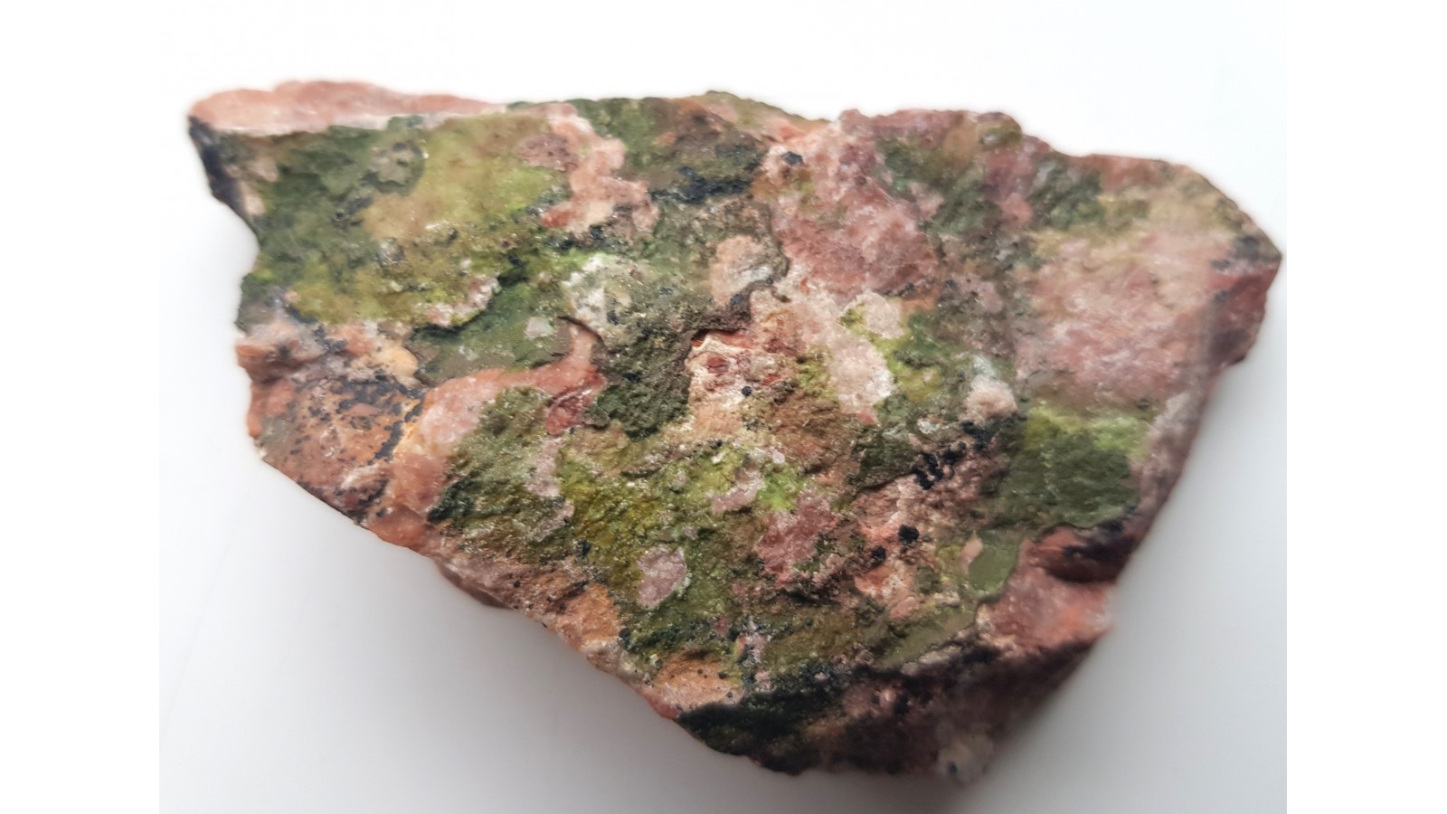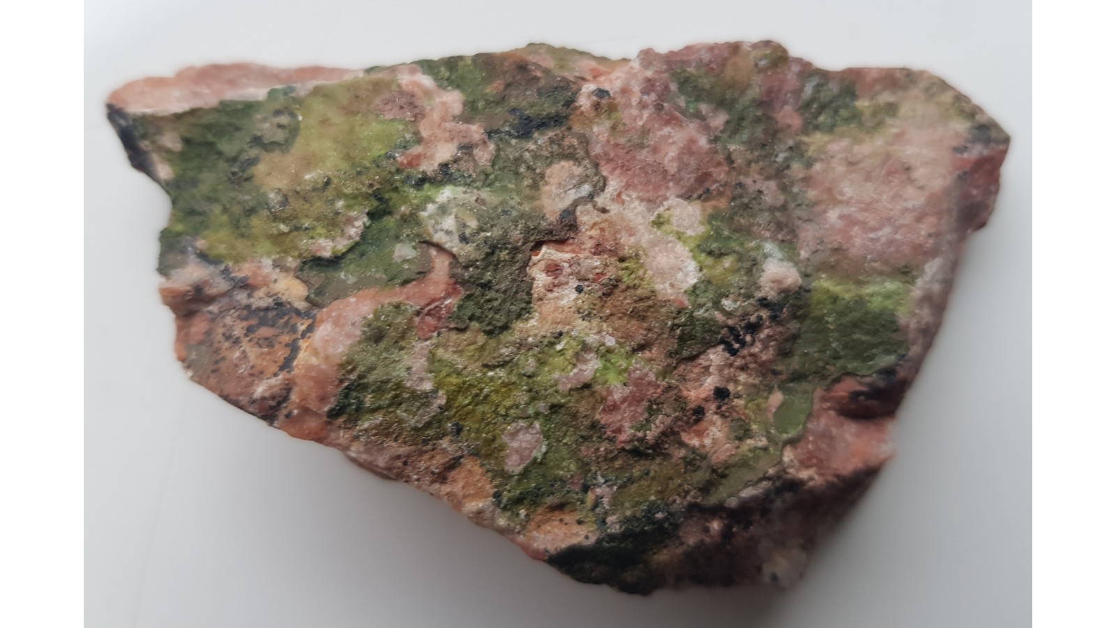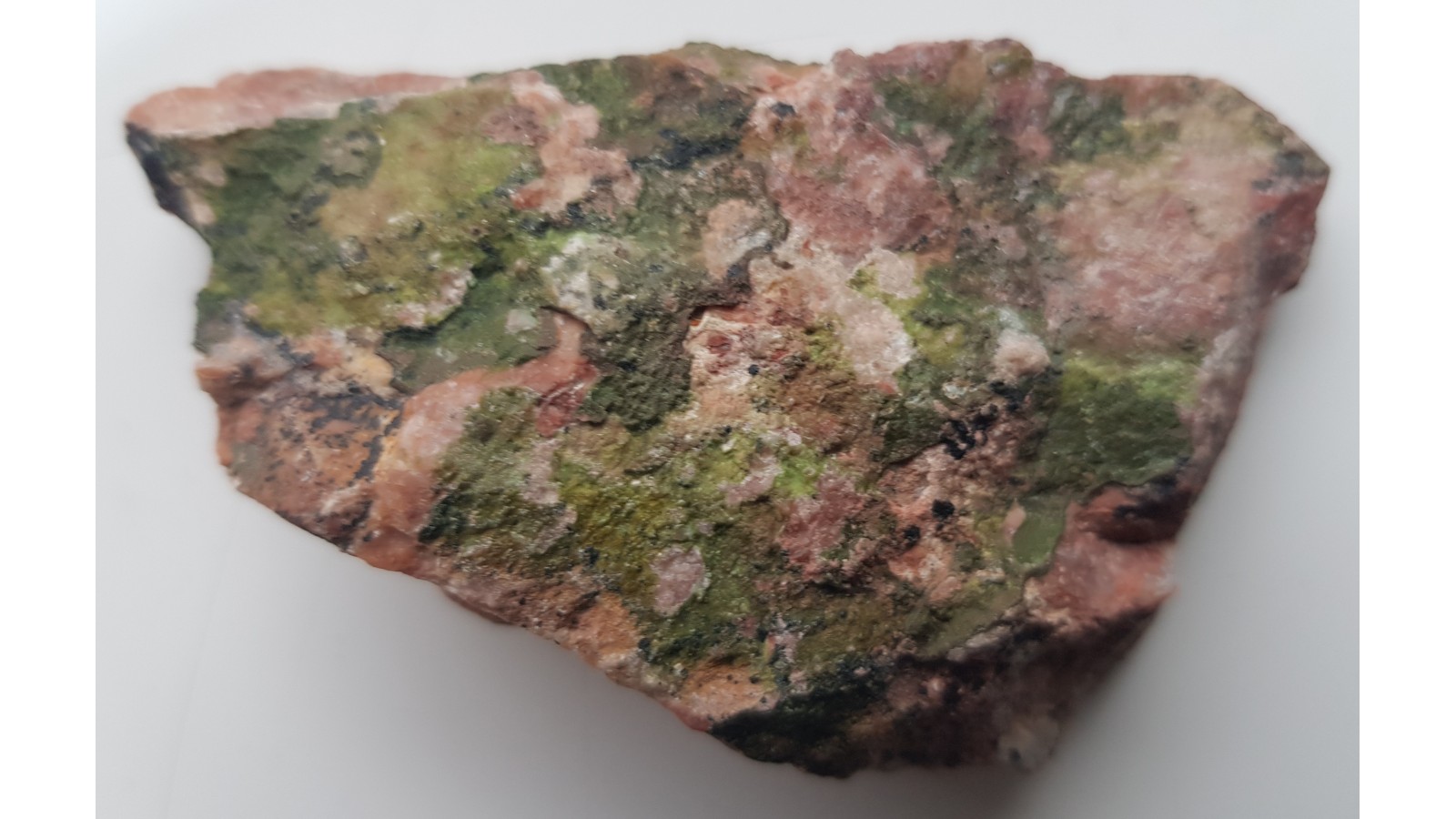 Naciekowe skupienia olivenitu (rzadki arsenian miedzi) na dewońskim wapieniu z Miedzianki w Górach Świętokrzyskich. Okaz sprzed wielu lat. Rzadkość. Polecam.