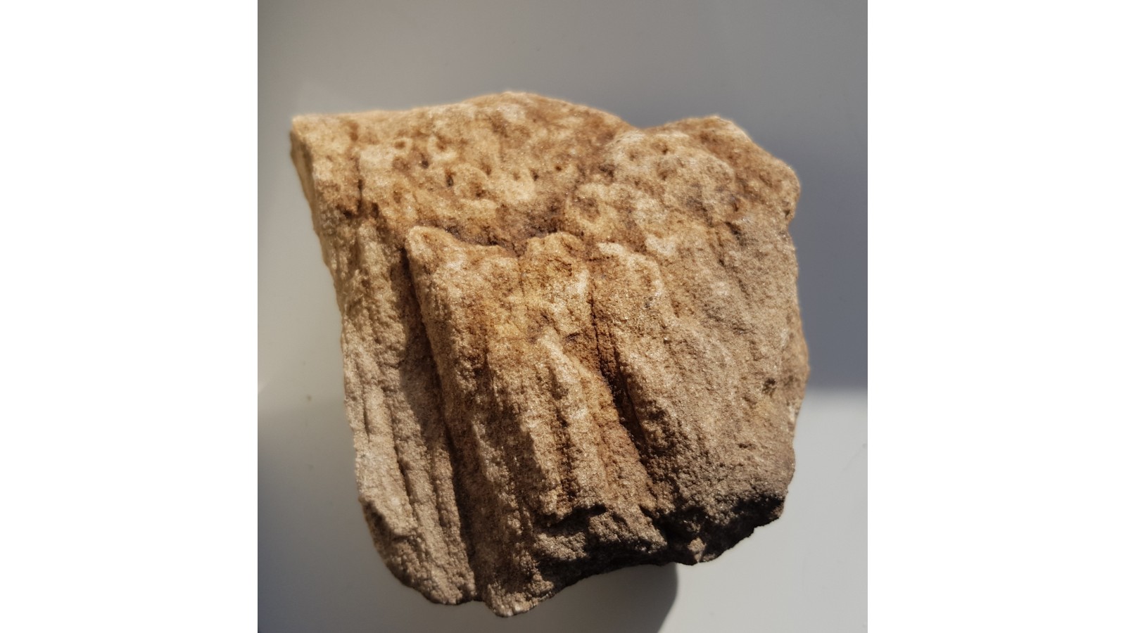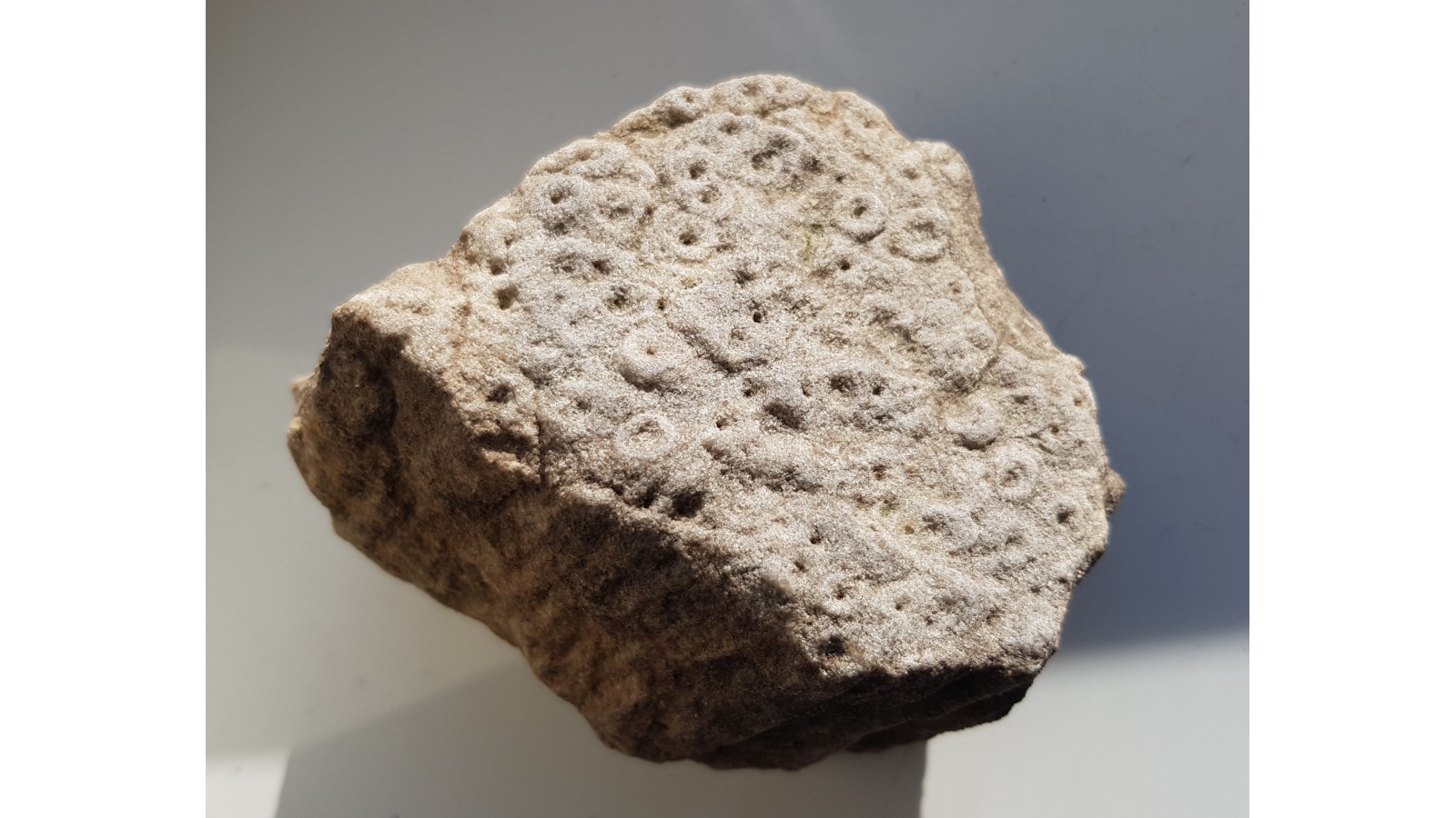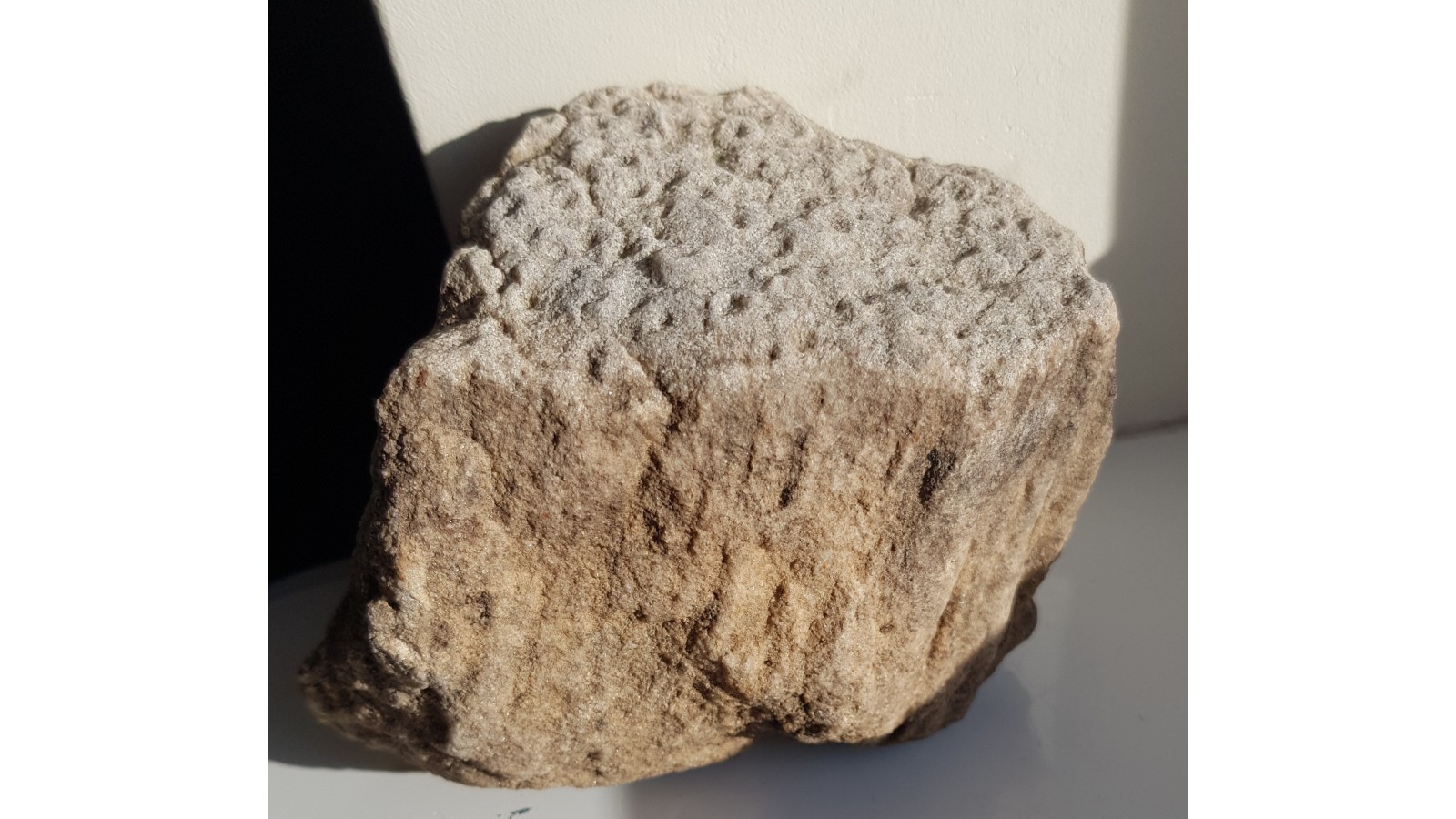 Bardzo wyrazisty okaz piaskowca scolithusowego z widocznymi na powierzchni trójwymiarowymi ujściami jam organizmów żyjących w płytkim osadzie morskim. Eratyk znaleziony w województwie lubuskim. Bardzo spektakularny okaz. Polecam.