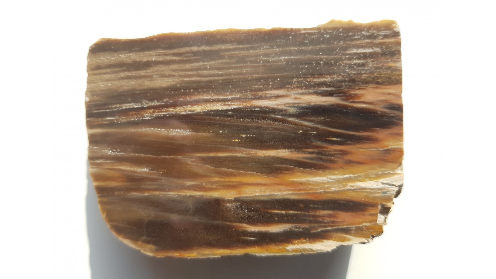 Polerowany okaz drewna skrzemieniałego o kontrastowym deseniu. Polecam.