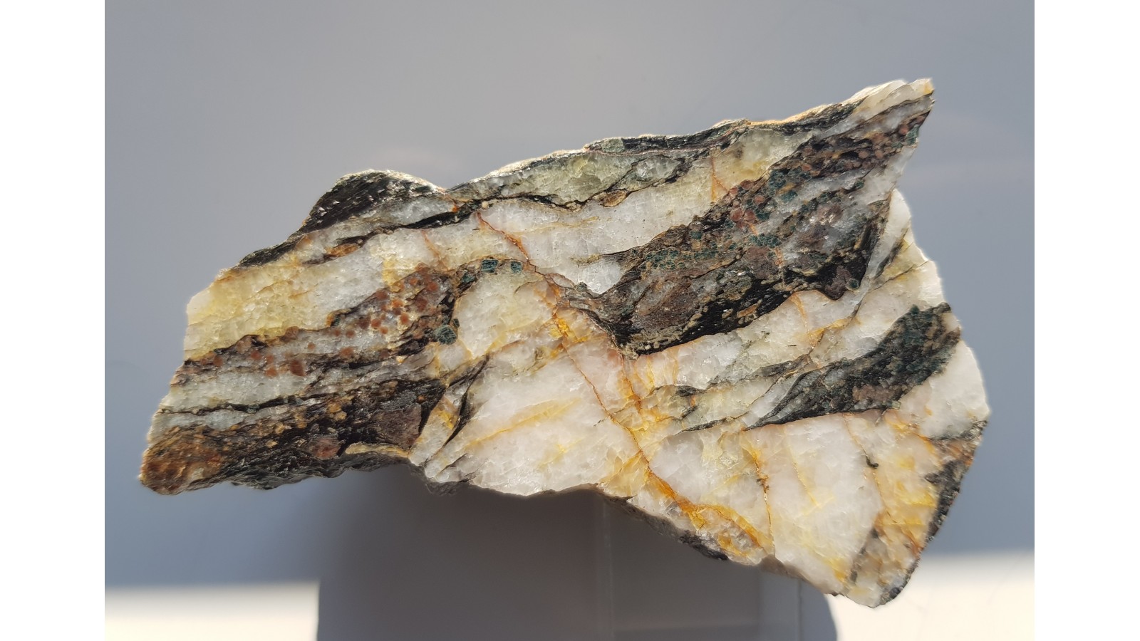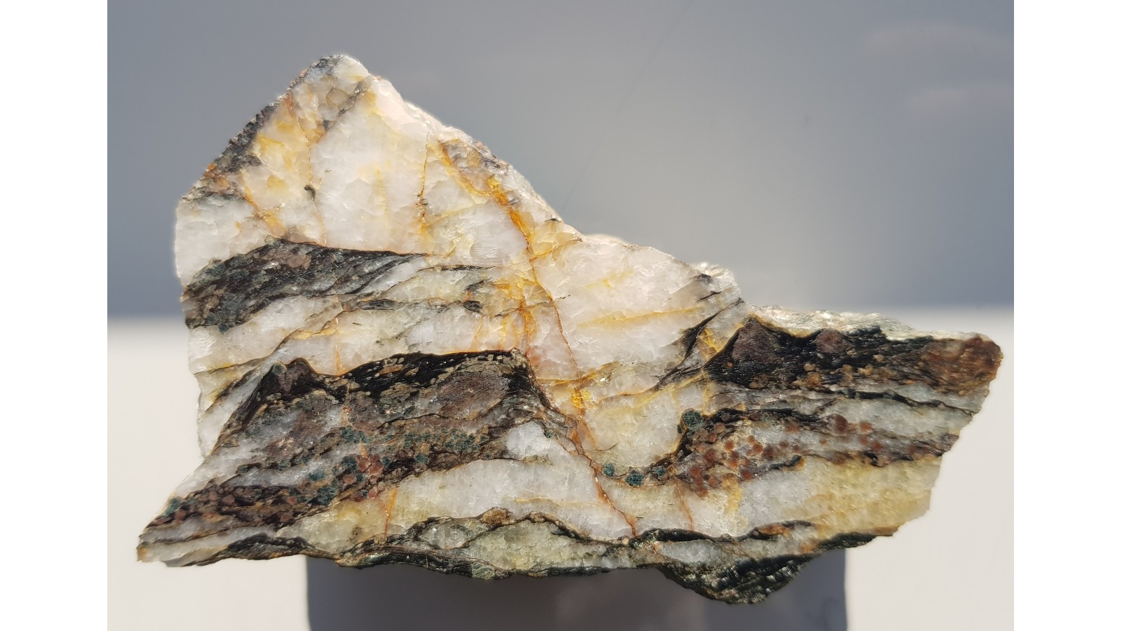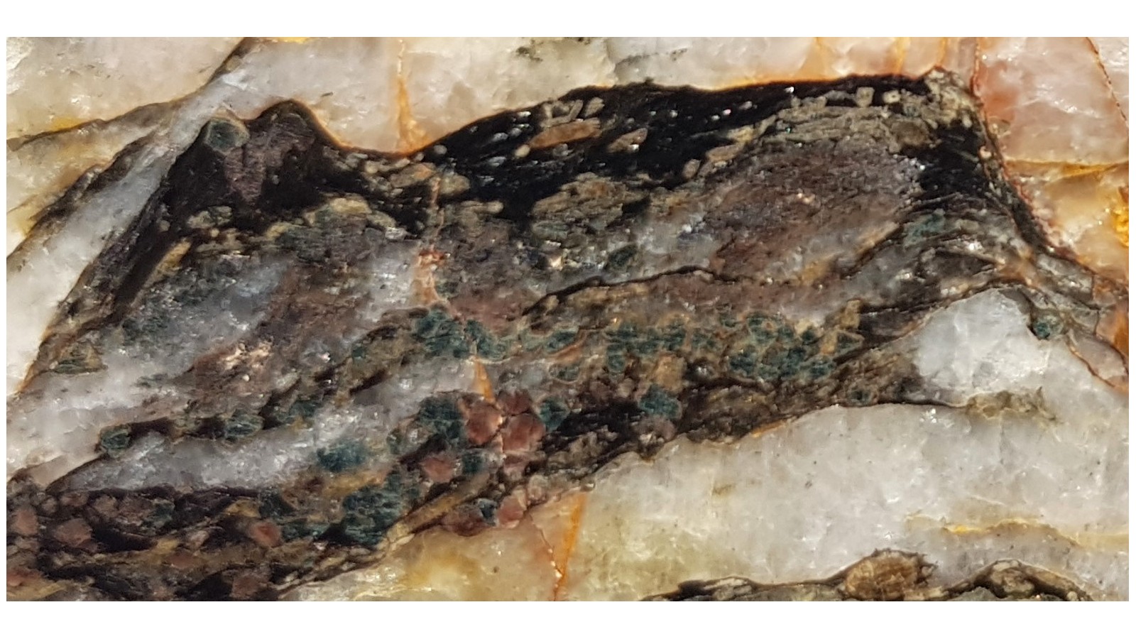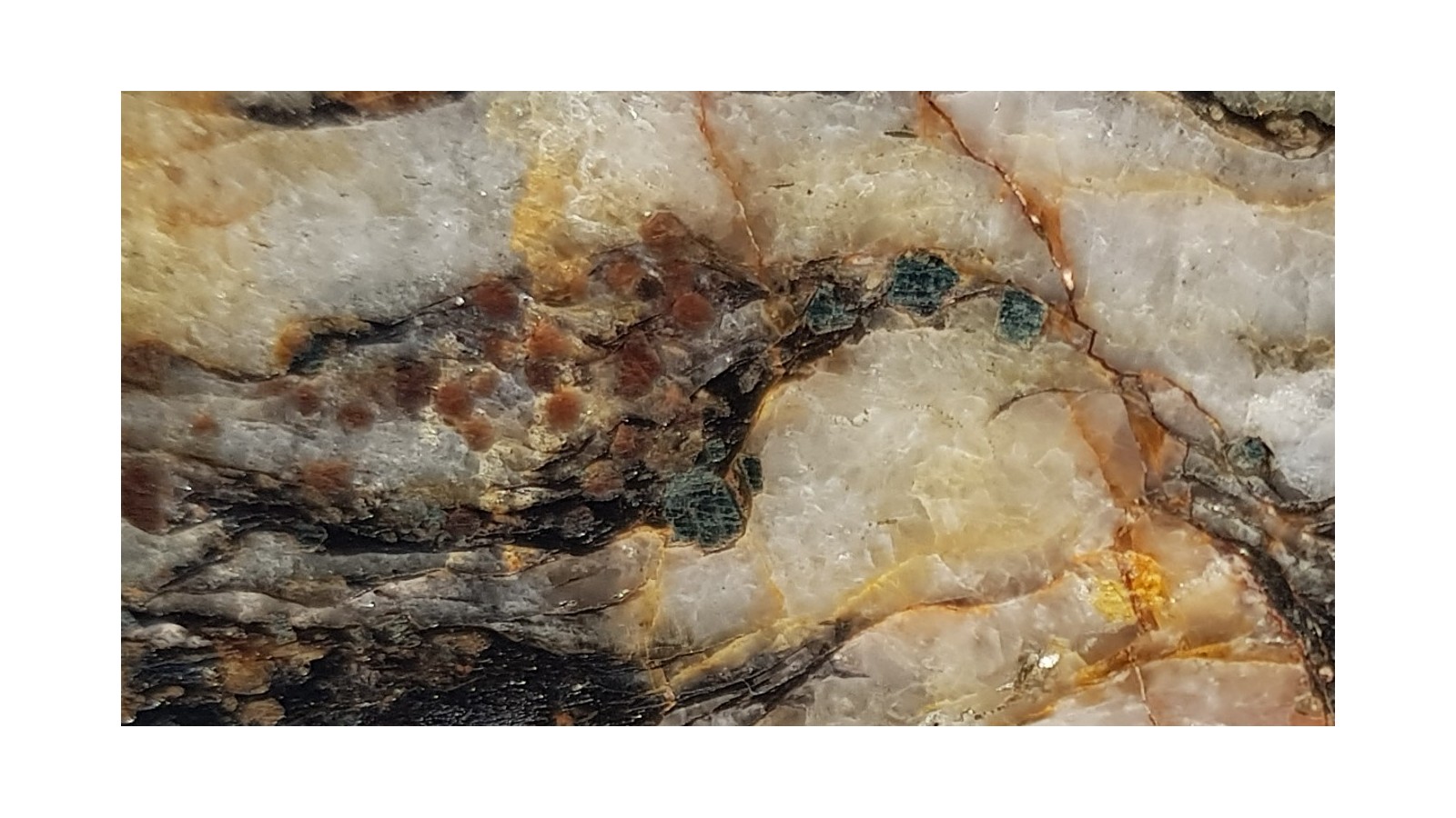 Zielone, izometryczne kryształy bardzo rzadkiego minerału - spinelu cynkowego - gahnitu z dawnych kopalń rud cyny i kobaltu z Gierczyna w Paśmie Kamienieckim w Górach Izerskich. Spinele widoczne bez powiększenia, oświetlone wykazują piękną zieloną barwę. Obok wrostki czerwonych granatów oraz rzadkość z tej lokalizacji, brązowe, przejrzyste, słupkowate kryształy staurolitu. Rzadkość mineralogiczna. Okaz polerowany jednostronnie. Idealna wielkość. Polecam.