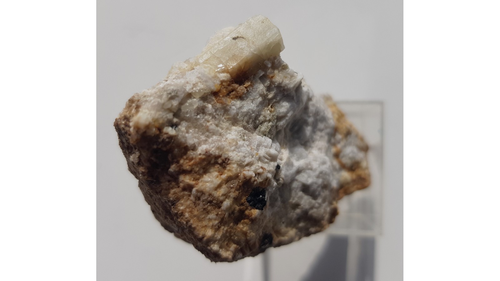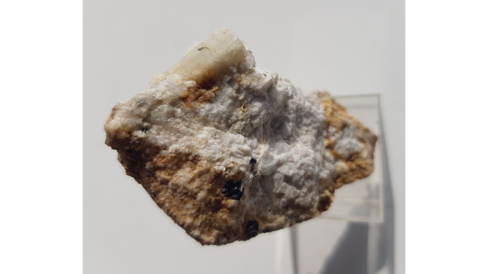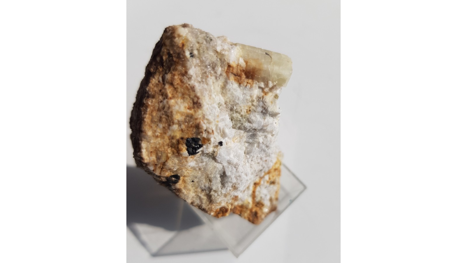Unikatowy okaz z uwagi na lokalizację. Beryl w pegmatycie pochodzi z masywu Strzelina, w którym okazy mineralogiczne są znajdowane sporadycznie. Polecam.