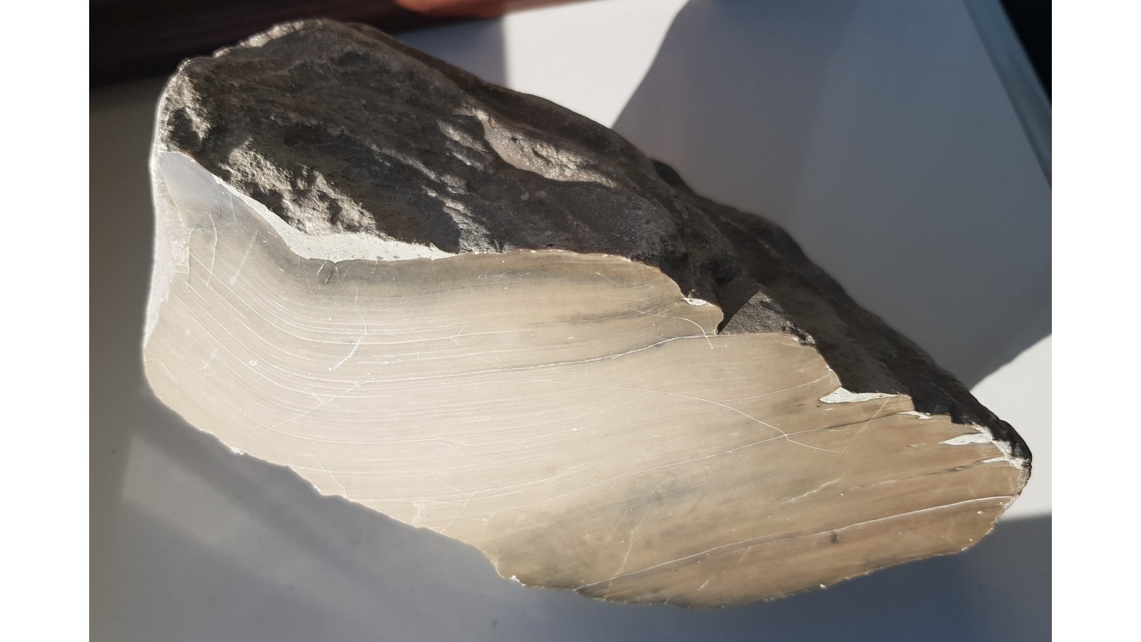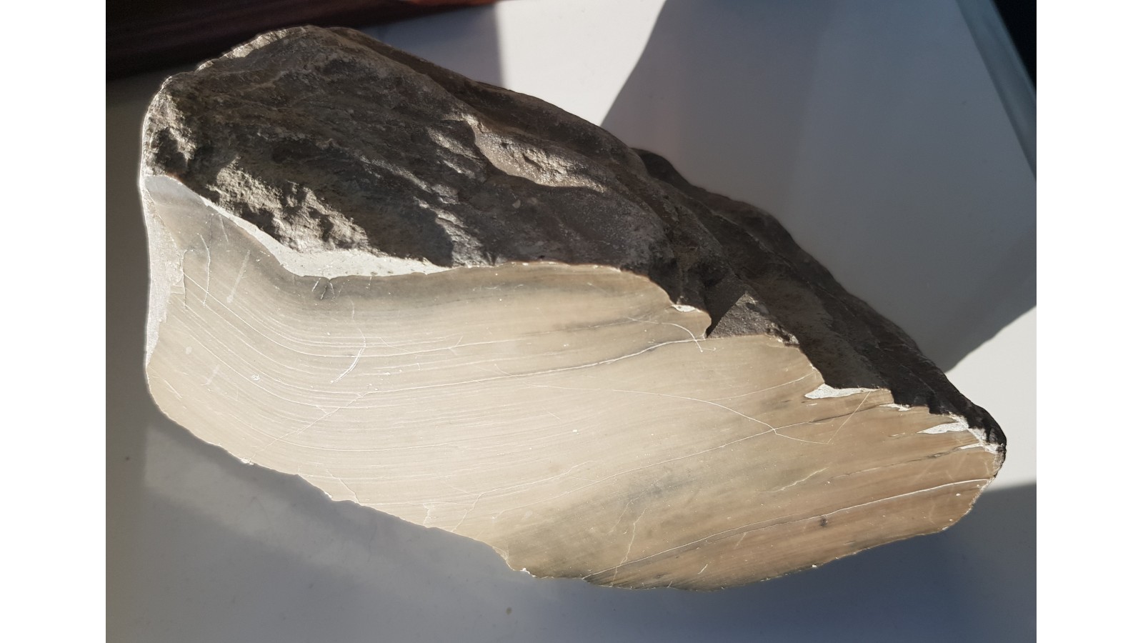 Duży stromatoporoid. Ekspozycyjny jest zarówno polerowany przekrój, jak i naturalna powierzchnia skamieniałości, na której widoczna jest skorupowa budowa. Duża, efektowna skamieniałość. Eratyk. Polecam.
