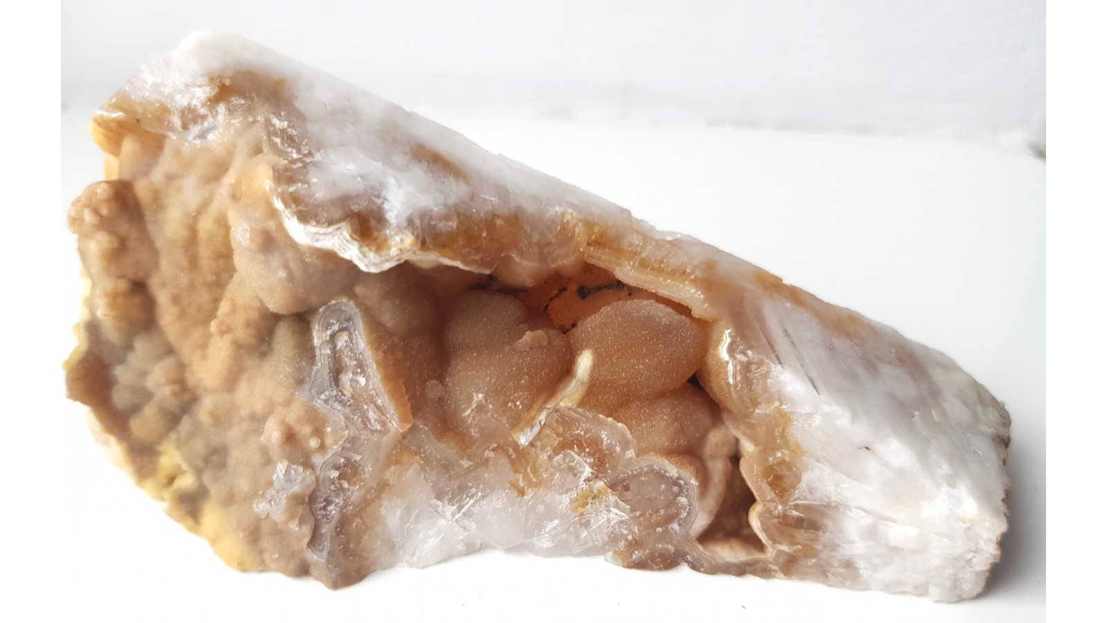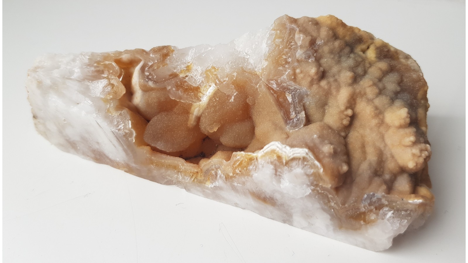 Niezwykłe kwarce ze Sławniowic (Sudety Wschodnie). Okaz ze złoża marmurów i dolomitów Południowej Opolszczyzny. Niezwykłość okazu polega na tym, że szczotki kwarcowe będące tutaj bazą zostały pokryte przez drobnokrystaliczny kwarc oraz chalcedon. Znalezisko sprzed około 10-ciu lat. Polecam.