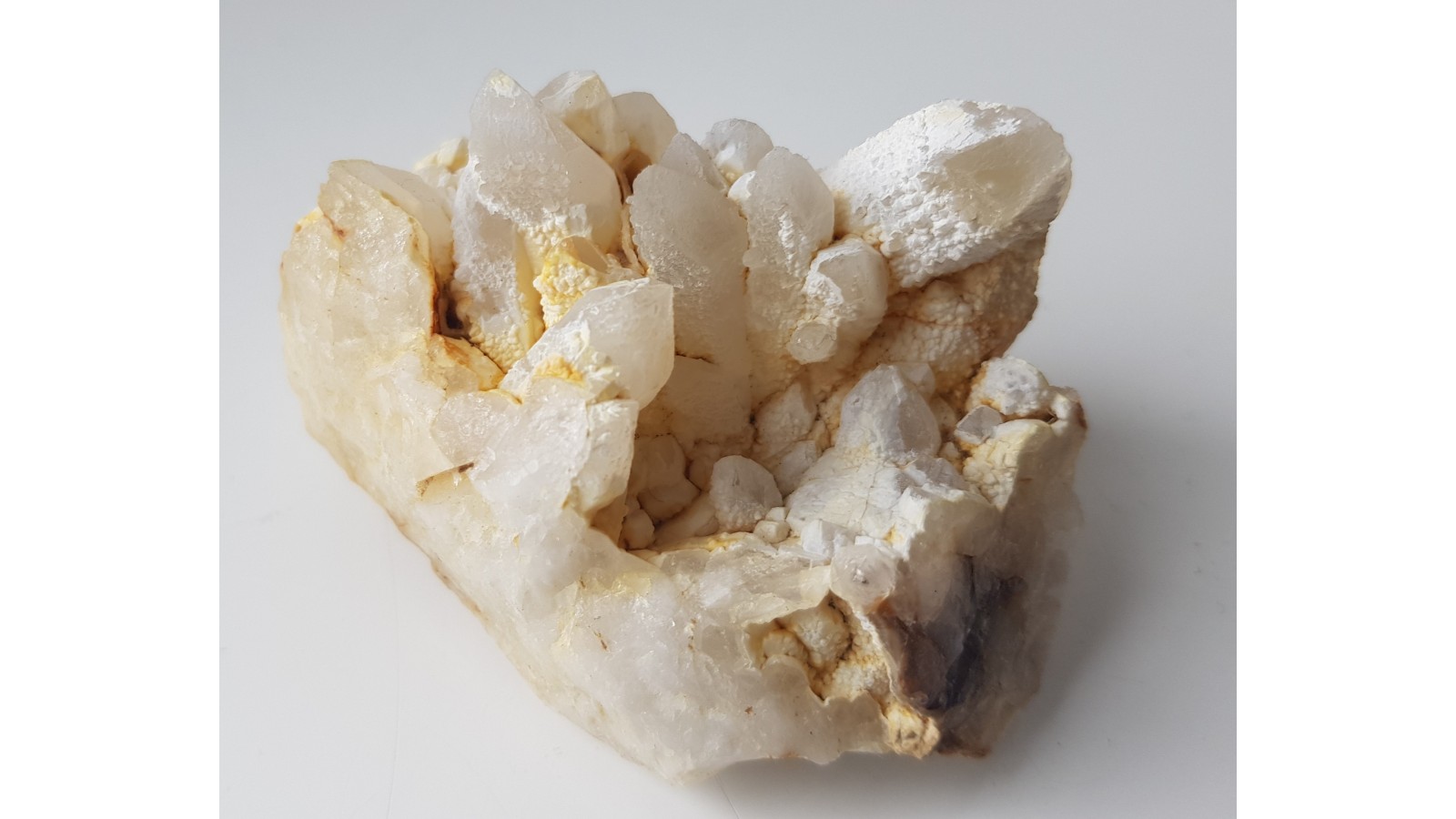 Szczotka dobrze wykształconych kwarców z pokrywą drobnokrystalicznego Sio2 ze Sławniowic (Sudety Wschodnie). Okaz ze złoża marmurów i dolomitów Południowej Opolszczyzny. Znalezisko sprzed około 10-ciu lat. Polecam.