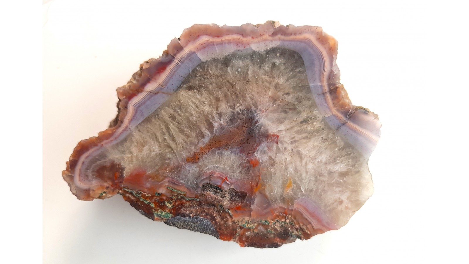 Agat z prasiolitem z Płóczek Grn. Duży, estetyczny. Mały, nie rzutujący na estetykę całości brak pełnego owalu z prawej strony u dołu. Polecam.